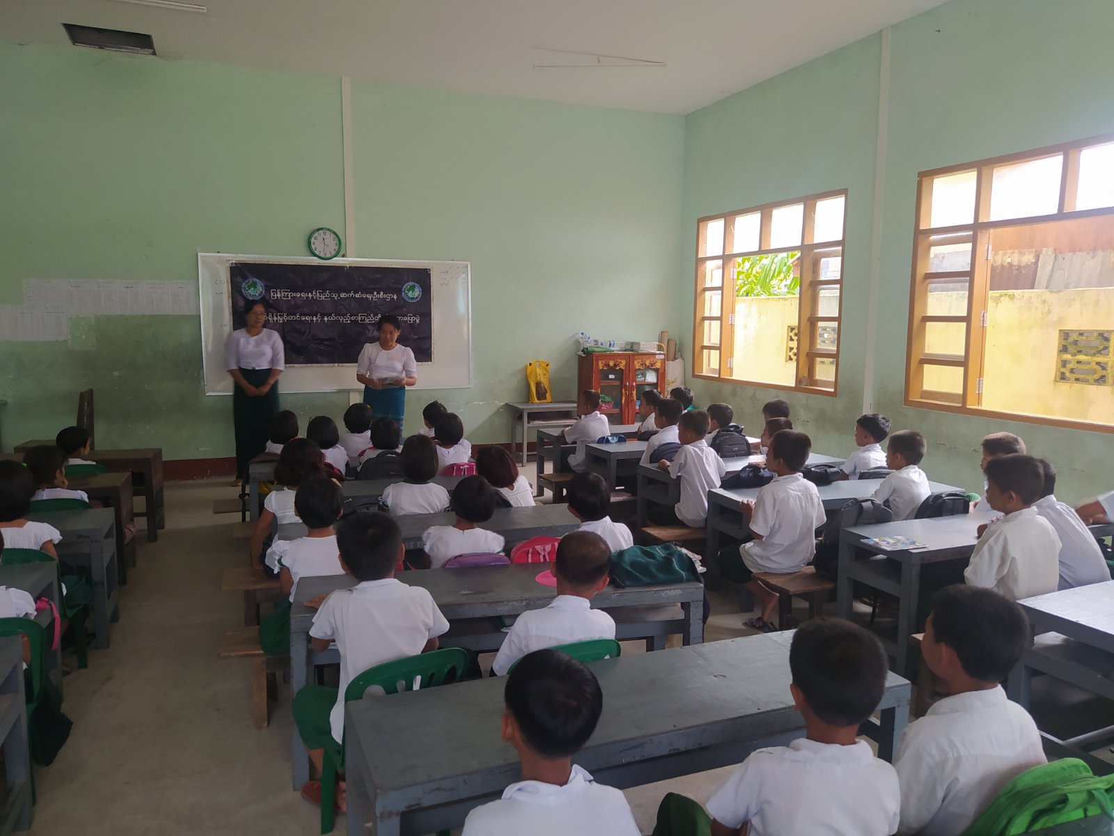 ရှေးဦးစွာ ကျောင်းအုပ်ဆရာမကြီး ဒေါ်ဝေဝေလှိုင်က အမှာစကားပြောကြားပြီး ပြန်ကြားရေးနှင့်ပြည်သူ့ဆက်ဆံရေးဦးစီးဌာနမှ ဒုတိယဦးစီးမှူး ဒေါ်ခင်မာလာအောင်က ကျောင်းသား၊ကျောင်းသူများ အားလပ်ချိန်ကို အကျိုးရှိစွာအသုံးပြုကြရေး၊ ကလေးသူငယ်များစစ်မှုထမ်းခြင်းမှ ကာကွယ်တားဆီးရေး၊ ကျောင်းစာကိုကြိုးစားကြသလို ဗဟုသုတတိုးပွားရေးအတွက် ပြင်ပစာပေများကိုပါ လေ့လာဖတ်ရှုကြရေးတို့ကို ဟောပြောဆွေးနွေးသည်။