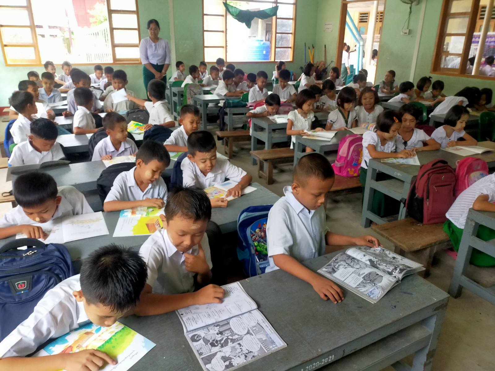 ဆက်လက်၍ ကျောင်းသားကျောင်းသူများက ပြန်ကြားရေးနှင့်ပြည်သူ့ဆက်ဆံရေးဦးစီးဌာနမှ ခင်းကျင်းပြသထားသည့် စာအုပ်စာစောင်များကို စိတ်ကြိုက်ရွေးချယ်ဖတ်ရှု့ကာ စာဖတ်စွမ်းရည်ယှဉ်ပြိုင်ခြင်း၊ ပုံပြင်ပြော၊ ကဗျာရွတ်ဆို ယှဉ်ပြိုင်ခြင်းများ ပြုလုပ်ခဲ့ကြသည်။