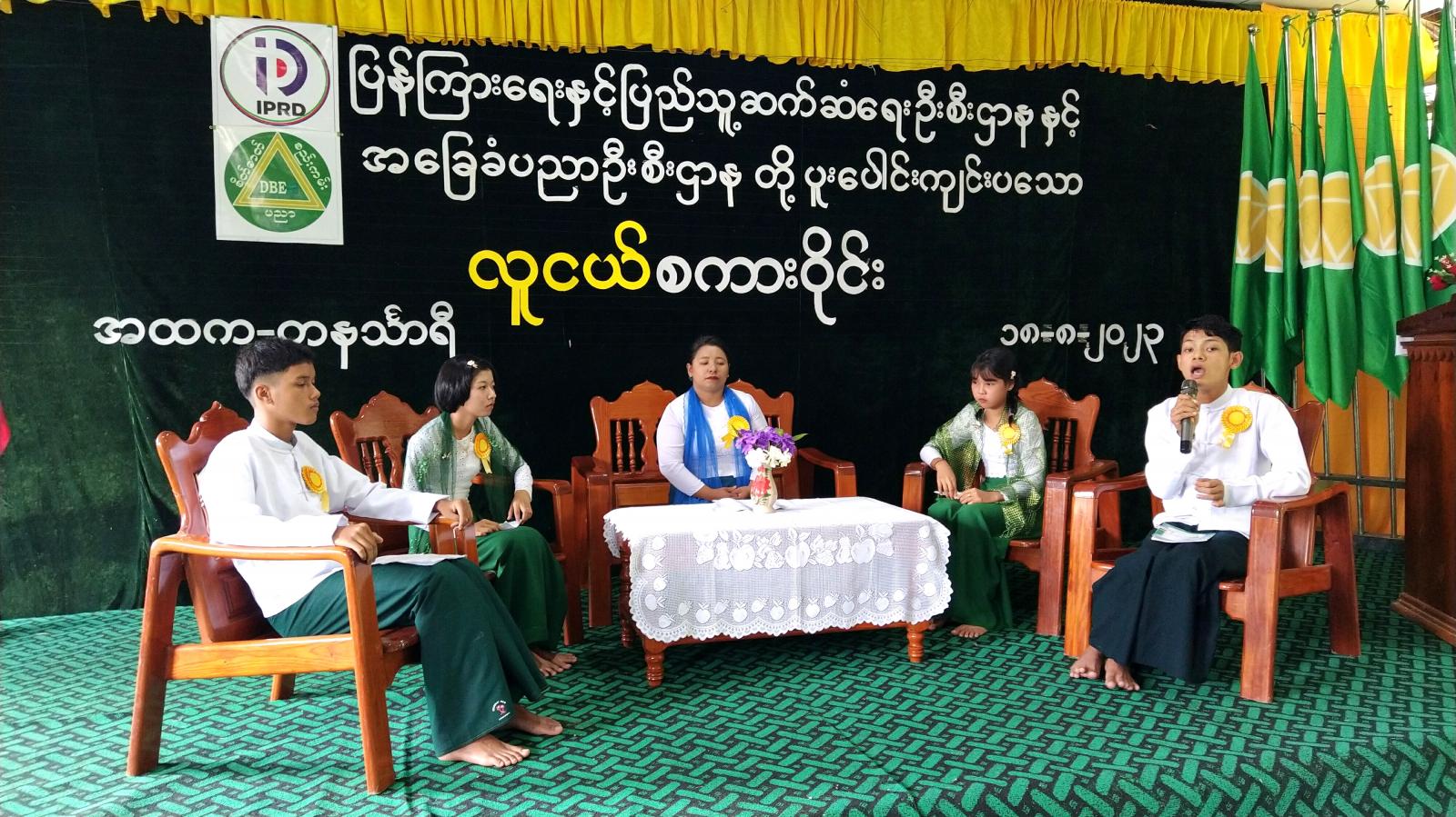ထို့နောက် လူငယ်စကားဝိုင်းတွင် ပါဝင်ဆွေးနွေးပေးခဲ့သည့် ကျောင်းသူ/သားများအား မြို့နယ်အုပ်ချုပ်ရေးမှူးနှင့် တာဝန်ရှိသူများက အမှတ်တရလက်ဆောင်ပေးအပ်ကြကြောင်း သိရှိရသည်။