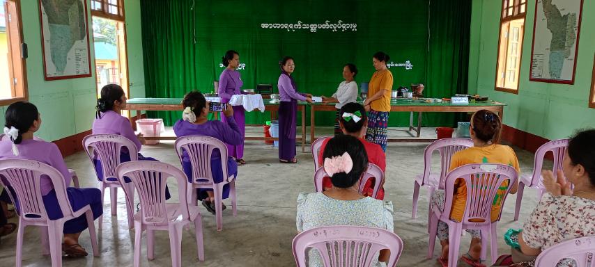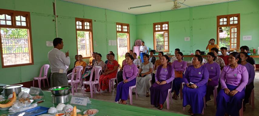အဆိုပါ အာဟာရဖွံဖြိုးရေး ရက်သတ္တပတ်လှုပ်ရှားမှု ဆောင်ရွက်ရာတွင် မြို့နယ်မိခင်နှင့်ကလေးစောင့်ရှောက်ရေးအသင်း ဥက္ကဋ္ဌ ဒေါ်ဒူးဆာဒီ(ခ)ဒေါ်နွေးနန္ဒာအောင်က အာဟာရကျန်းမာရေး ရက်သတ္တပတ်လှုပ်ရှားမှု ကျန်းမာရေးအသိပညာပေးခြင်းနှင့် အာဟာရချက်ပြုတ်ပြင်ဆင် သရုပ်ပြပွဲပြုလုပ်ရခြင်း၏ ရည်ရွယ်ချက်များကို ပြောကြားကာ မြို့နယ်ပြည်သူ့ကျန်းမာရေးဦးစီးဌာန ကျန်းမာရေးကြီးကြပ်(၁) ဦးမျိုးရန်အောင်က ကလေးငယ်များအတွက် အာဟာရဖွံဖြိုးရေး အစားအစာများတွင်ပါဝင်သော အဓိကအစာအုပ်စုကြီး (၃) စုအကြောင်းကိုလည်းကောင်း၊ မွေးကင်းစမှ အသက် (၂) နှစ်အထိ မိခင်နို့ရည်တစ်မျိုးတည်းကိုသာ တိုက်ကျွေးရန်နှင့် ကျန်းမာရေးနှင့်အညီ အာဟာရပြည့်ဝမျှတစွာ ချက်ပြုတ်ကျွေးမွေးကြရန်တို့ကို အသိပညာပေး ပြောကြားပြီးနောက် အာဟာရမျှတစွာ ပြင်ဆင်ချက်ပြုတ်သရုပ်ပြပြိုင်ပွဲကို ဆက်လက်ကျင်းပရာ အမှတ် (၁)၊ (၂)၊ (၃)၊ (၄) ရပ်ကွက်များမှ ပြိုင်ပွဲဝင်မိခင် (၈) ဦးတို့က အဖွဲ့ (၄) ဖွဲ့ခွဲကာ ပါဝင်ယှဥ်ပြိုင်ကြပြီး အာဟာရချက်ပြုတ်ပြင်ဆင်မှု ပထမ၊ ဒုတိယ၊ တတိယဆုရရှိသော အဖွဲ့များနှင့် အကောင်းဆုံးဆုရရှိသူများကို တာဝန်ရှိသူများက ဆုများအသီးသီးချီးမြှင့်ခဲ့ကြပြီး ချက်ပြုတ်ပြင်ဆင်ထားသော အာဟာရများကို တက်ရောက်လာသောမိခင်များ၊ နို့တိုက်မိခင်များနှင့် ကိုယ်ဝန်ဆောင်မိခင်များအား အာဟာရဒါန လှူဒါန်းခဲ့ကြကြောင်း သိရသည်။