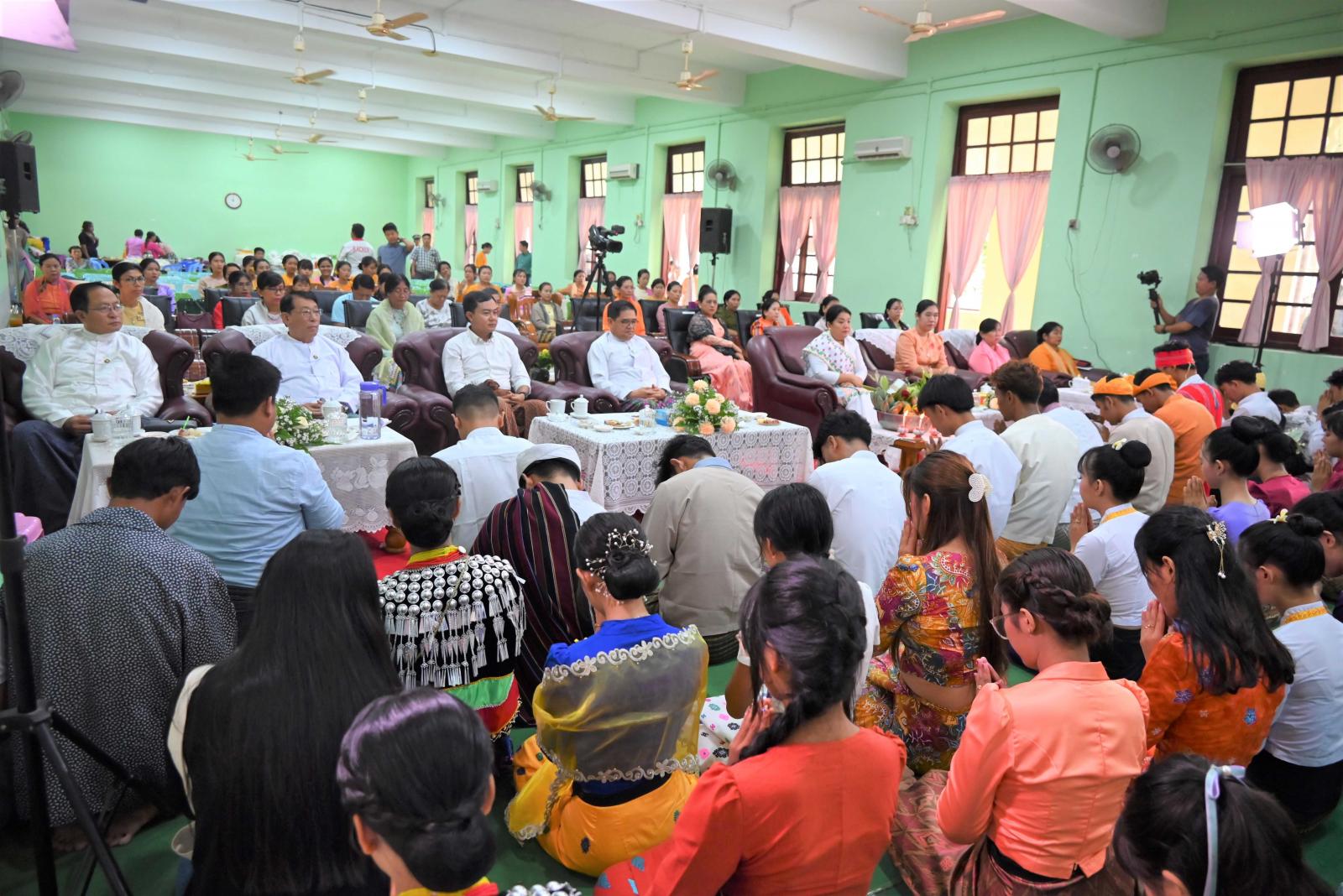 ထို့အပြင် ပြည်နယ်ဝန်ကြီးချုပ်နှင့် အဖွဲ့ဝင်များသည် မြစ်ကြီးနားမြို့ ခေမာသီရိရပ်ကွက်ရှိ ရှမ်းဓမ္မာရုံ၌ ပြည်နယ်တိုင်းရင်းသားရေးရာဝန်ကြီးဌာနမှ ဦးဆောင်ကျင်းပသည့် ရှမ်းတိုင်းရင်းသား မျိုးနွယ်စုများ၏ အဋ္ဌမအကြိမ်မြောက် စုပေါင်းဝါဆိုသင်္ကန်းကပ်လှူပူဇော်ပွဲသို့ တက်ရောက်ခဲ့ကြပြီး ရှမ်းတိုင်းရင်းသားမျိုးနွယ်စုများအတွက် အလှူငွေမျာကို ပေးအပ်လှူဒါန်းခဲ့ကြောင်း သိရှိရသည်။
