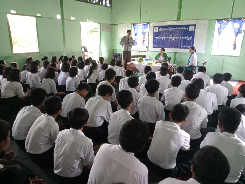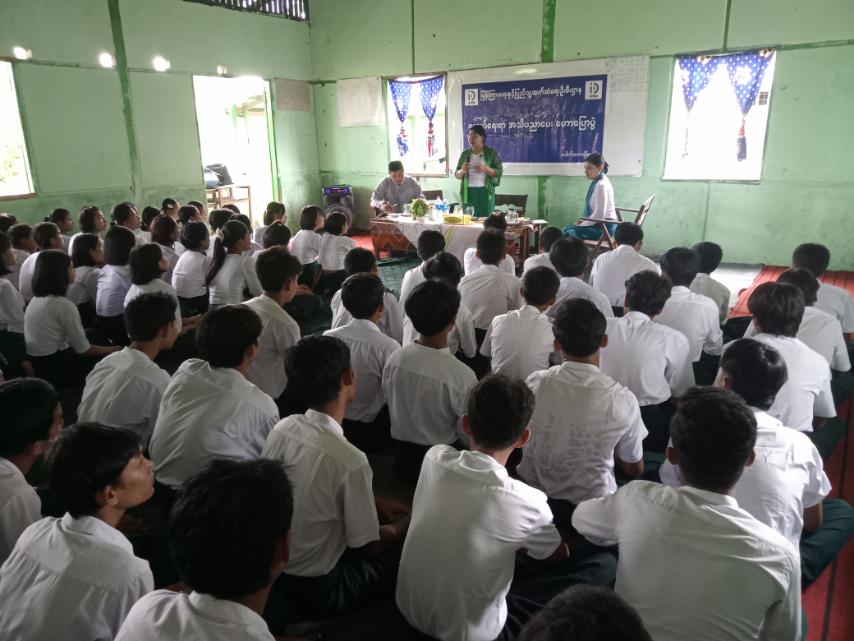 ရှေးဦးစွာ ကျောင်းအုပ်ဆရာမကြီး ဒေါ်မိမိသောင်းက အဖွင့်အမှာစကားပြောကြားပြီး မြို့နယ်ပြန်ကြားရေးနှင့်ပြည်သူ့ဆက်ဆံရေးဦးစီးဌာနမှ မြို့နယ်ဦးစီးမှူး ဒေါ်တင်တင်စိန်က စာဖတ်ခြင်း၏အကျိုးကျေးဇူး ခေါင်းစဥ်ဖြင့်လည်းကောင်း၊ ဒုတိယဦးစီးမှူး ဦးဝင်းမင်းစိုးက လူငယ်နှင့်စည်းကမ်းခေါင်းစဥ်ဖြင့်လည်းကောင်း အသိပညာပေး ဆွေးနွေးဟောပြောပြီး ကျောင်းသား ကျောင်းသူများက သိရှိလိုသည့် အကြောင်းအရာများကို မေးမြန်းရာ တာဝန်ရှိသူများက ပြန်လည်ဖြေကြားပေးခဲ့သည်။