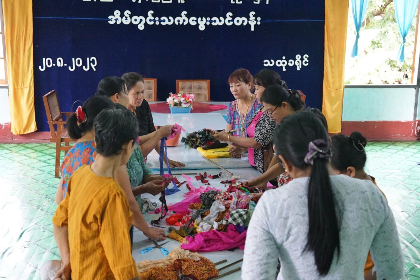 သင်တန်းတွင် မြို့နယ်အမျိုးသမီးများအသင်း (Woman Club) မှ နည်းပြ ဒေါ်အိအိချောက စွန့်ပစ်အဝတ်စများအား အဝတ်တံမြက်စည်း အသုံးပြုနိုင်ရေး စနစ်တကျညှပ်ခြင်း၊ အဝတ်စများကြိုးသီခြင်း၊ တံမြက်စည်းရိုး ရွေးချယ်ဖြတ်တောက်ခြင်း၊ အဝတ်နှင့် တံမြက်စည်းရိုးအား ခိုင်မာအောင်တွဲဆက်ခြင်းစသည့် အဝတ်တံမြက်စည်းတစ်ချောင်း ပြုလုပ်ပုံတို့ကို စနစ်တကျ ရှင်းလင်းသင်ကြားရာ တက်ရောက်လာသည့် အမျိုးသမီးများက စိတ်ပါဝင်စားစွာဖြင့် လက်တွေ့သင်ယူ လေ့လာခဲ့ကြသည်။