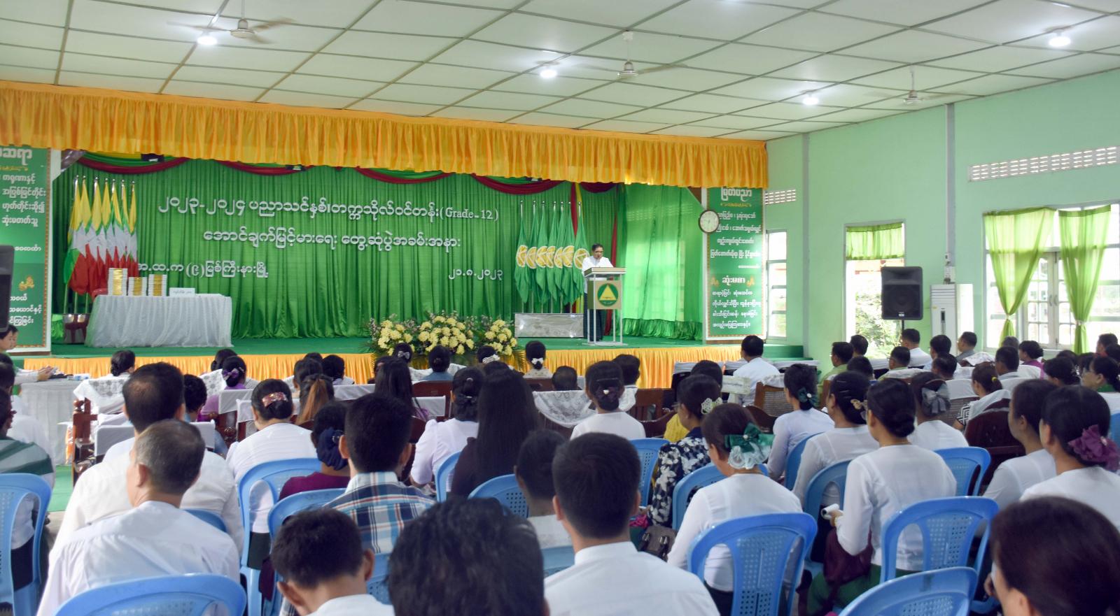 ၂၀၂၃-၂၀၂၄ ပညာသင်နှစ် ကချင်ပြည်နယ်၏ တက္ကသိုလ်ဝင်တန်း (Grade-12) အောင်ချက် မြင့်မားရေးအတွက် ကော်မတီအဖွဲ့ဝင်များနှင့် အခြေခံပညာအထက်တန်းကျောင်းအုပ်များ၊ အထက်တန်းပြ ဆရာ/ ဆရာမများနှင့် တွေ့ဆုံပွဲ အခမ်းအနားကို သြဂုတ် ၂၁ ရက် နံနက် ၉ နာရီက မြစ်ကြီးနားမြို့ အမှတ် (၉) အခြေခံပညာအထက်တန်းကျောင်း ရွှေသွေးခန်းမ၌ ကျင်းပပြုလုပ်ခဲ့သည်။