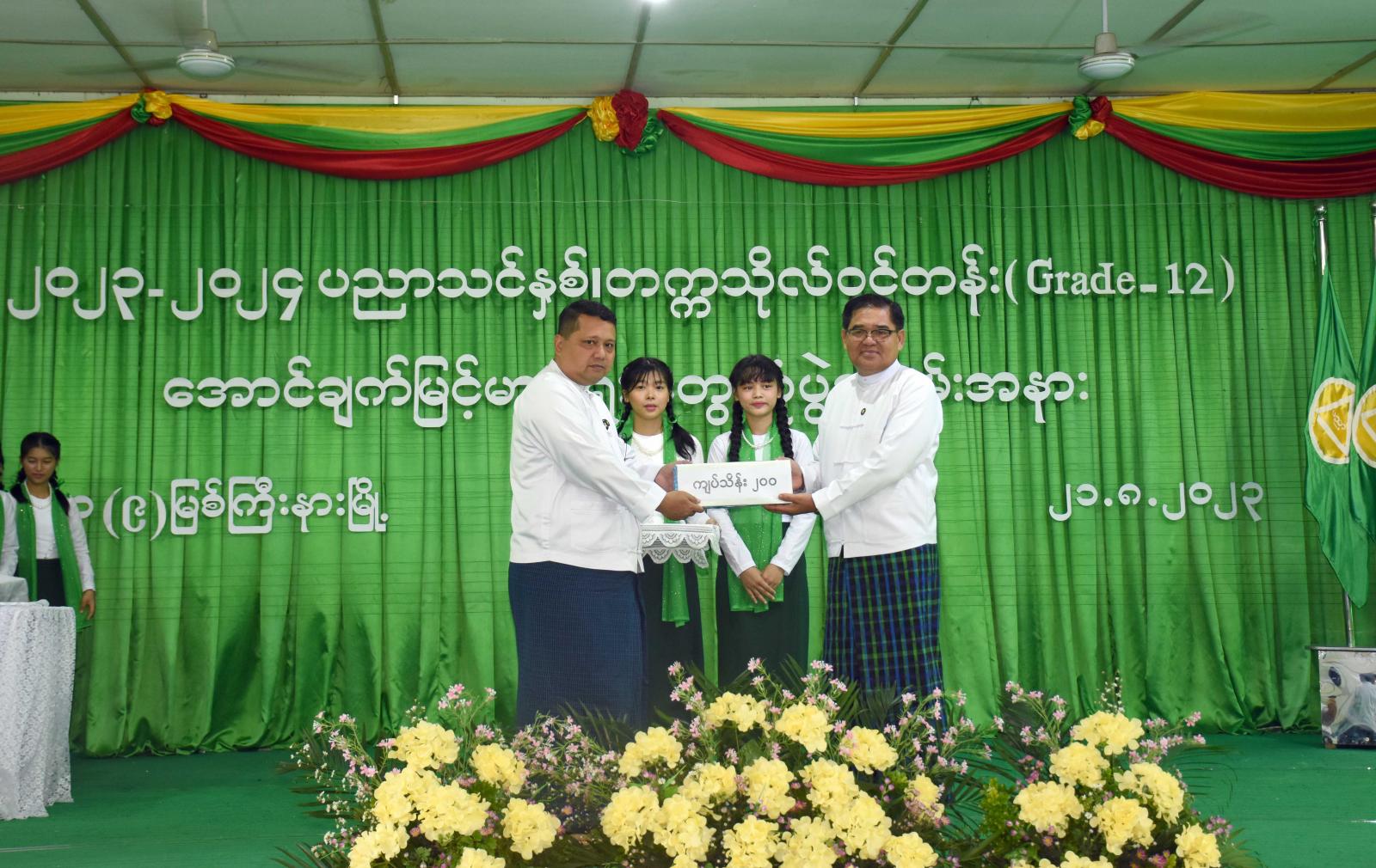 ယင်းနောက် ပြည်နယ်ဝန်ကြီးချုပ်က တက္ကသိုလ်ဝင်တန်းအောင်ချက်မြင့်မားရေးအတွက် ရန်ပုံငွေကျပ်သိန်း ၂၀၀ ကို ပြည်နယ်လူမှုရေးဝန်ကြီးထံပေးအပ်ခဲ့ပြီး ပြည်နယ်လူမှုရေးရာဝန်ကြီးက အောင်ချက်မြင့်မားရေးအတွက် ပညာရေးအထောက်အကူပြုအဖွဲ့ထံ အလှူရှင်များ၏ ရန်ပုံငွေများ ပေးအပ်လှူဒါန်းခဲ့မှုများကိုလက်ခံရယူပြီး ဂုဏ်ပြုမှတ်တမ်းလွှာများကို ပြန်လည်ပေးအပ်ခဲ့သည်။