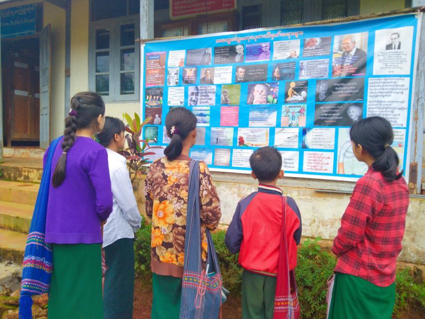 ထို့နောက် ပြန်ကြားရေးနှင့်ပြည်သူ့ဆက်ဆံရေးဦးစီးဌာန ရုံးရှေ့နံရံကပ်ပြဘုတ်တွင် ပြသထားသော ကမ္ဘာကျော်ပုဂ္ဂိုလ်များ၏ မိန့်ခွန်းများ၊ စာရေးဆရာများ၏ စာပေဆိုင်ရာ အဆိုအမိန့်များ စသည့် စာဖတ်ရှိန်မြှင့်တင်ရေးဆိုင်ရာ အထွေထွေ သိမှတ်ဖွယ်ရာများ ပြသထားရှိမှုကို ဒေသနေပြည်သူများ၊ ကျောင်းသား/ကျောင်းသူများက စိတ်ပါဝင်စားစွာ လေ့လာကြည့်ရှု မှတ်သားခဲ့ကြကြောင်း သိရသည်။