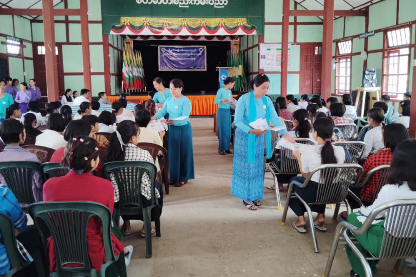 အခမ်းအနားပြီးနောက် မြို့နယ်အမျိုးသမီးရေးရာအဖွဲ့ဥက္ကဋ္ဌ ဒေါ်မြကြေးမှုံနှင့်အဖွဲ့ဝင်များ၊ မြို့နယ်မိခင်နှင့် ကလေးစောင့်ရှောက်ရေးအသင်းအဖွဲ့ဝင်များက အသိပညာပေး လက်ကမ်း စာစောင်များကို ကျောင်းသား၊ ကျောင်းသူများထံ အခမဲ့ဖြန့်ဝေပေးခဲ့ကြောင်းသိရသည်။