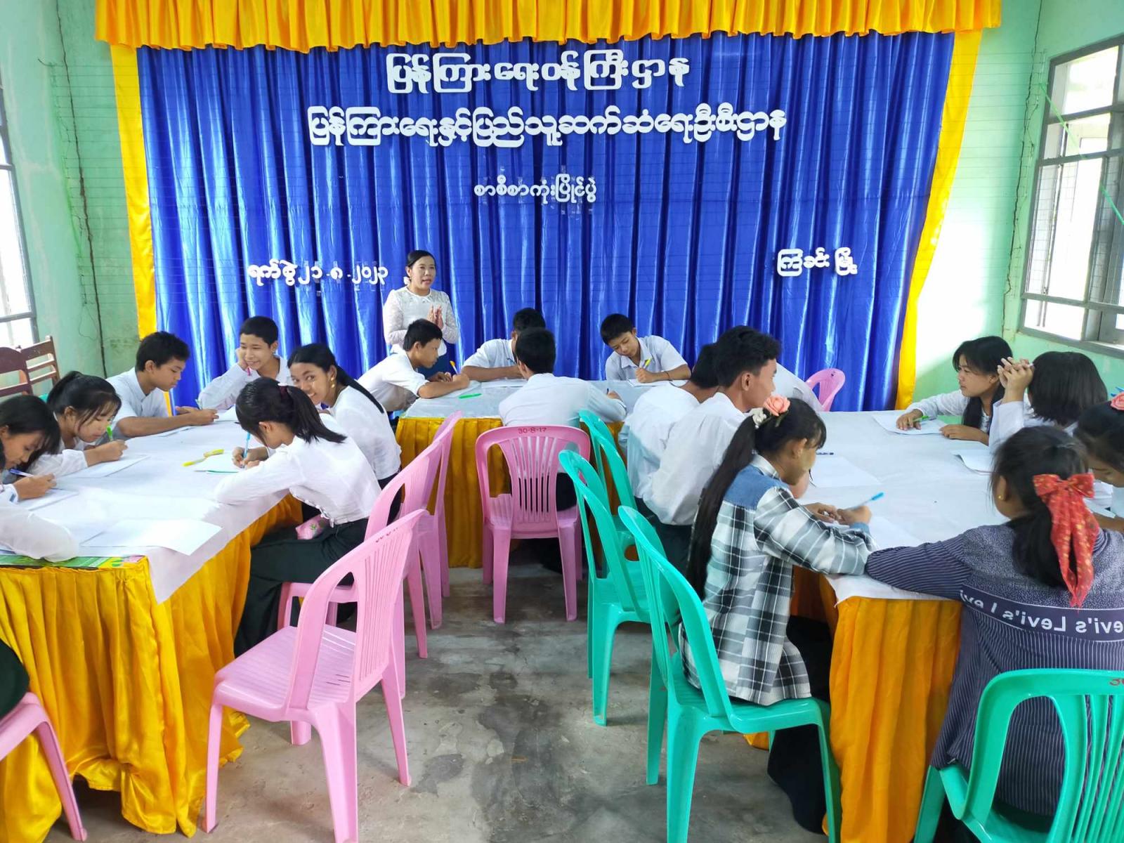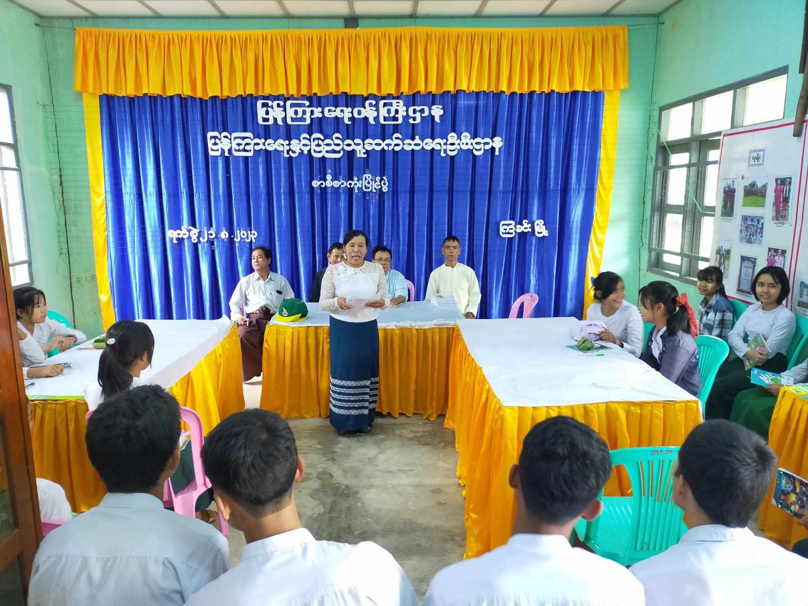 ထို့နောက် စာစီစာကုံးပြိုင်ပွဲ စတင်ကျင်းပရာ အမှတ်-၂ အခြေခံပညာအထက်တန်းကျောင်းမှ (G-9) ကျောင်းသား/ကျောင်းသူ (၂၀) ဦးတို့က “ကျွန်ုပ်တို့၏ ယုံကြည်ချက်” ခေါင်းစဉ်ဖြင့် ဝင်ရောက်ယှဉ်ပြိုင်ကြပြီး ပထမ၊ ဒုတိယ၊ တတိယဆုနှင့် နှစ်သိမ့်ဆုရရှိကြသော ကျောင်းသား၊ ကျောင်းသူများကို ပြန်ကြားရေးနှင့်ပြည်သူ့ဆက်ဆံရေးဦးစီးဌာန မြို့နယ်ဦးစီးအရှိ ဒေါ်ခင်မိုးမြင့်နှင့် (Book Club) အဖွဲ့ဝင်များက ဆုလက်ဆောင်များ ချီးမြှင့်ပေးအပ်ကြသည်။