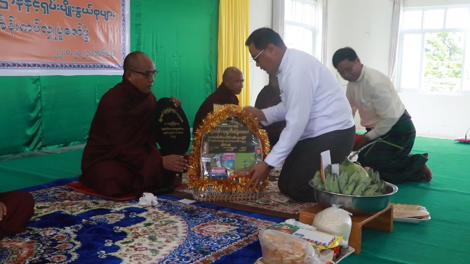 ထို့နောက် ပြည်နယ်ဝန်ကြီးနှင့် ဇနီး တာဝန်ရှိသူများက ဆရာတော်/ သံဃာတော်များအား နေ့ဆွမ်းဆက်ကပ်လှူဒါန်းခဲ့ကြကြောင်း သိရှိရသည်။