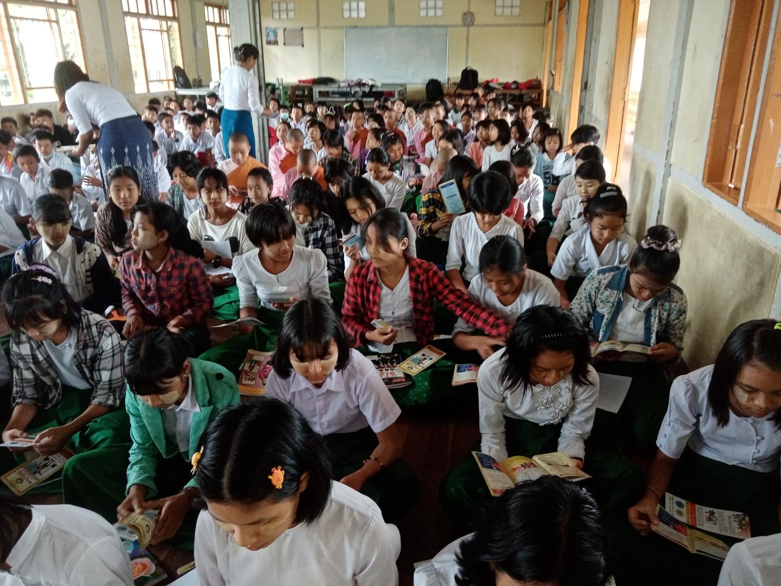 ထို့နောက် ခရိုင် ဘေးအန္တရာယ် စီမံခန့်ခွဲမှုဦးစီးဌာန ခရိုင်ဦးစီးမှူး ဒေါ်ဝင်းနုက သဘာဝဘေးကြိုတင်ကာကွယ်ရေး ခေါင်းစဉ်ဖြင့်လည်းကောင်း၊ ပြန်/ဆက်ဦးစီးဌာန ဒုတိယဦးစီးမှူး ဒေါ်ကေကေနိုင်က လူငယ်နှင့်စည်းကမ်းခေါင်းစဉ်ဖြင့်လည်းကောင်း၊ ခရိုင်ဦးစီးမှူး ဒေါ်နန်းအေးခိုင်က ကလေးအလုပ်သမား ပပျောက်ရေးခေါင်းစဉ်များဖြင့် ဗဟုသုတဖြစ်ဖွယ်ရာ အသိပညာပေးဟောပြောခဲ့ကြပြီး တက်ရောက်လာကြသော ကျောင်းသား/ကျောင်းသူများက မိမိတို့ သိရှိလိုသည်များကို မေးမြန်းခဲ့ကြရာတွင် ဆွေးနွေးဟောပြောသူများက ပြန်လည်ဖြေကြားပေးခဲ့ကြောင်း သိရသည်။