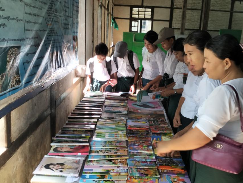 ထို့နောက် ပြန်ကြားရေးနှင့်ပြည်သူ့ဆက်ဆံရေးဦးစီးဌာနမှ ခင်းကျင်းပြသထားသော သုတ/ရသစာအုပ်များ၊ ဂျာနယ်စာစောင်များ၊ ဝတ္တုစာအုပ်များ၊ ရုပ်ပြစာအုပ်များကို ကျောင်းသား/ကျောင်းသူများမှ စိတ်ပါဝင်စားစွာ လေ့လာကြည့်ရှုခဲ့ကြောင်း သိရသည်။