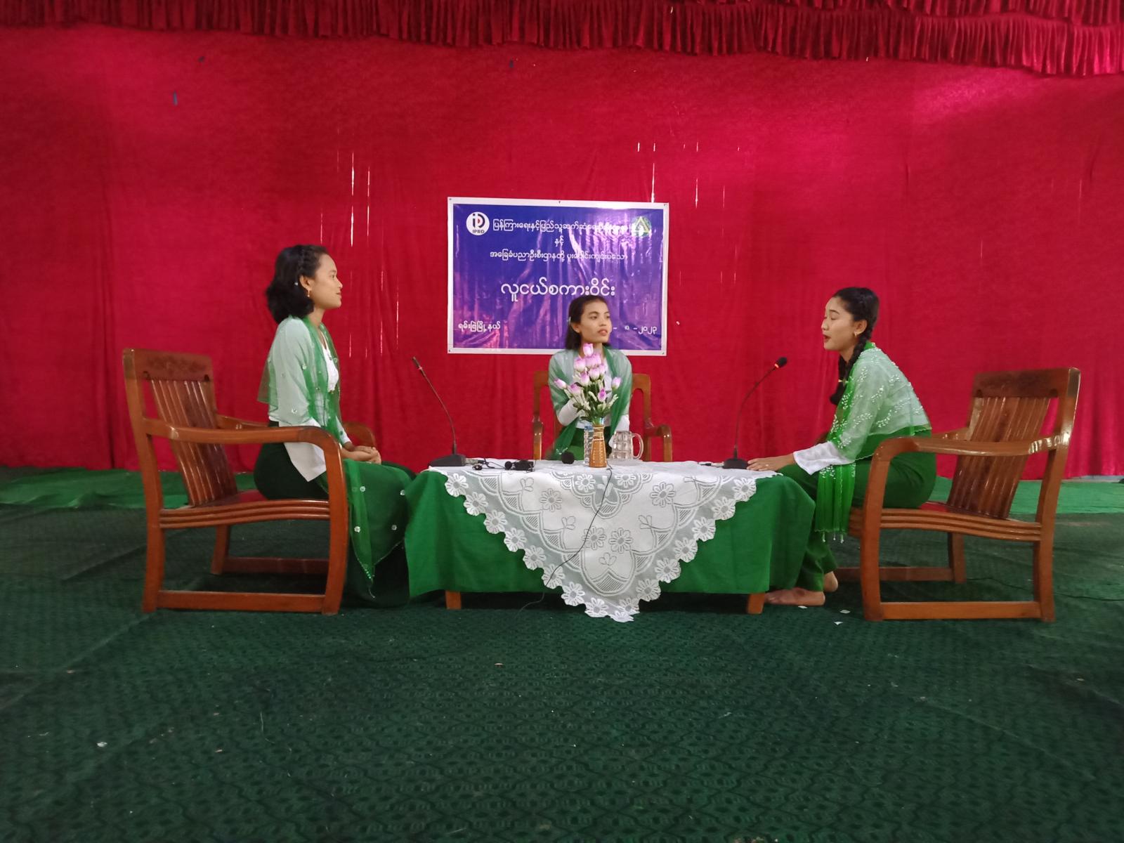 ၎င်းနောက် ပြန်ကြားရေးနှင့်ပြည်သူ့ဆက်ဆံရေးဦးစီးဌာနမှ ဦးစီးအရာရှိ ဒေါ်အောင်တင်ကြည်က လူငယ်စကားဝိုင်း ကျင်းပပြုလုပ်ရခြင်း၏ ရည်ရွယ်ချက်အား ရှင်းလင်း ပြောကြားသည်။ ထို့နောက် လူငယ်စကားဝိုင်းကိုဆက်လက်ပြုလုပ်ရာ G-11 (A)မှ မောင်ဘုန်းသစ်ကိုကို၊ မမီမီအောင်၊ မအေးမြတ်မွန်တို့က လူငယ်နှင့်စာပေ ခေါင်းစဉ်ဖြင့် လည်းကောင်း ၊ G–11(B)မှ မခင်စိုးဝင်း၊ မမေရီစိုး၊ မလင်းလင်းဝင်းတို့က လူငယ်နှင့်ယဉ်ကျေးမှု ခေါင်းစဉ်ဖြင့်လည်းကောင်း၊ G–11(C)မှ မောင်ဝေလွင်ထွန်း၊ မချိုချိုဝင်း၊ မဇော်မွန်မြတ်တို့က လူငယ်နှင့်မူးယစ်ဆေးဝါး ခေါင်းစဉ်ဖြင့်လည်းကောင်း အသီးသီးဆွေးနွေးခဲ့ကြသည်။