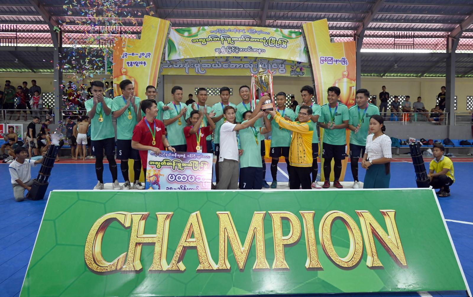 အခမ်းအနားသို့ ပြည်နယ်ဝန်ကြီးချုပ် ဦးခက်ထိန်နန်နှင့် ဇနီးဒေါ်နန်ဆိုင်း၊ ပြည်နယ်ဝန်ကြီးများနှင့် ၎င်းတို့၏ ဇနီးများ၊ ပြည်နယ်အဆင့် ဌာနဆိုင်ရာများ၊ ဖူဆယ်ဘောလုံးဝါသနာရှင်များ တက် ရောက်ခဲ့ကြပြီး ဗိုလ်လုပွဲစဉ်အဖြစ် ဒူဒူအသင်းနှင့် ထိန်လင်းအသင်းတို့၏ ယှဉ်ပြိုင်ကစားမှုကို ကြည့် ရှုအားပေးခဲ့ကြရာ ဒူဒူအသင်းက ၁၀ ဂိုး ၃ ဂိုးဖြင့် အနိုင်ရ ဗိုလ်စွဲခဲ့သည်။