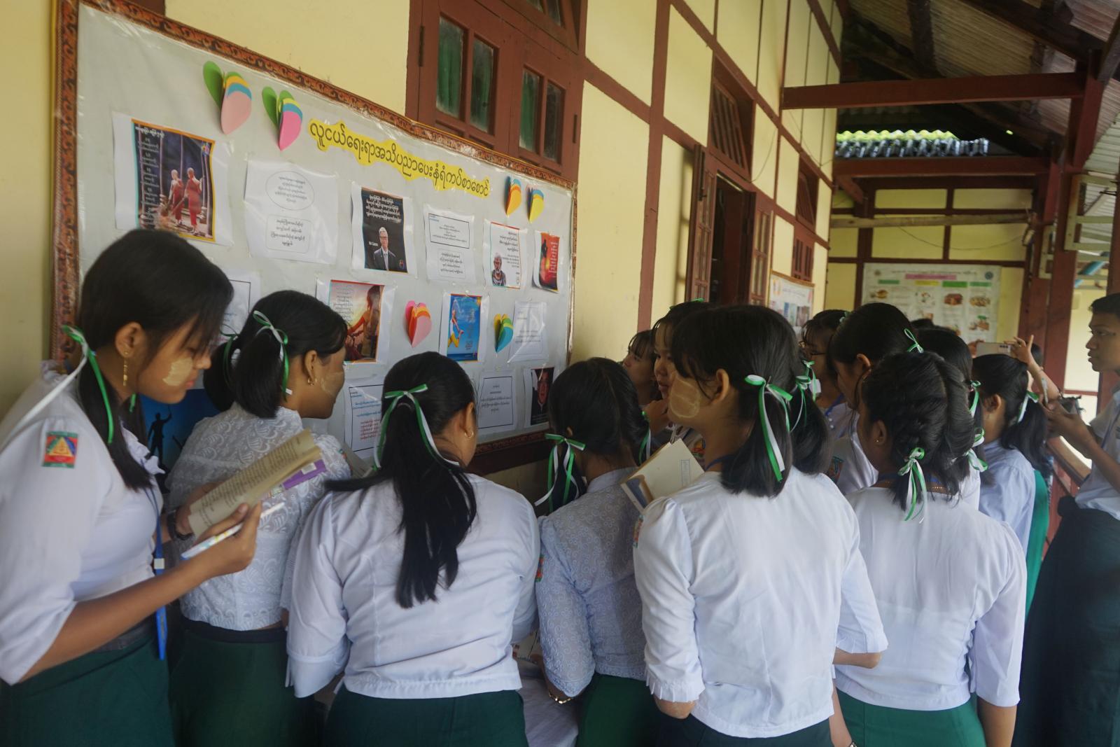 ယင်းနောက် မြို့နယ်အားကစားနှင့်ကာယပညာဦးစီးဌာနမှ အားကစားဆိုင်ရာပစ္စည်းများ ပေးအပ်လှူဒါန်းခဲ့ရာ အထက်တန်းပြဆရာမ ဒေါ်စန်းသီတာက လက်ခံရယူခဲ့ပြီး အားကစားဆိုင်ရာ အသိပညာပေး လက်ကမ်းစာစောင်များဖြန့်ဝေခဲ့ကြောင်းနှင့် ပြန်ကြားရေးနှင့်ပြည်သူ့ဆက်ဆံရေး ဦးစီးဌာနမှ ပြသထားရှိသည့် လူငယ်ရေးရာ အသိပညာပေး နံရံကပ်စာစောင်များ၊ သုတ/ရသစာအုပ် စာစောင်များကို ကျောင်းသား/ကျောင်းသူများက စိတ်ပါဝင်စားစွာ လေ့လာဖတ်ရှုခဲ့ကြောင်း သိရသည်။