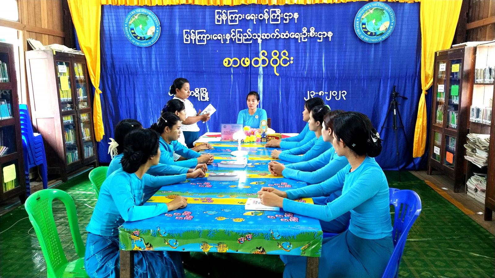 စာဖတ်ဝိုင်းတွင် ရှေးဦးစွာ မြို့နယ်ပြန်ကြားရေးနှင့်ပြည်သူ့ဆက်ဆံရေးဦးစီးဌာန၊ ဒုတိယဦးစီးမှူး ဒေါ်သီသီခိုင်က ယခုစာဖတ်ဝိုင်း ပြုလုပ်ရခြင်း၏ရည်ရွယ်ချက်နှင့် စာဖတ်ခြင်း၏ အကျိုးကျေးဇူးများကို ရှင်းလင်းဆွေးနွေးသည်။