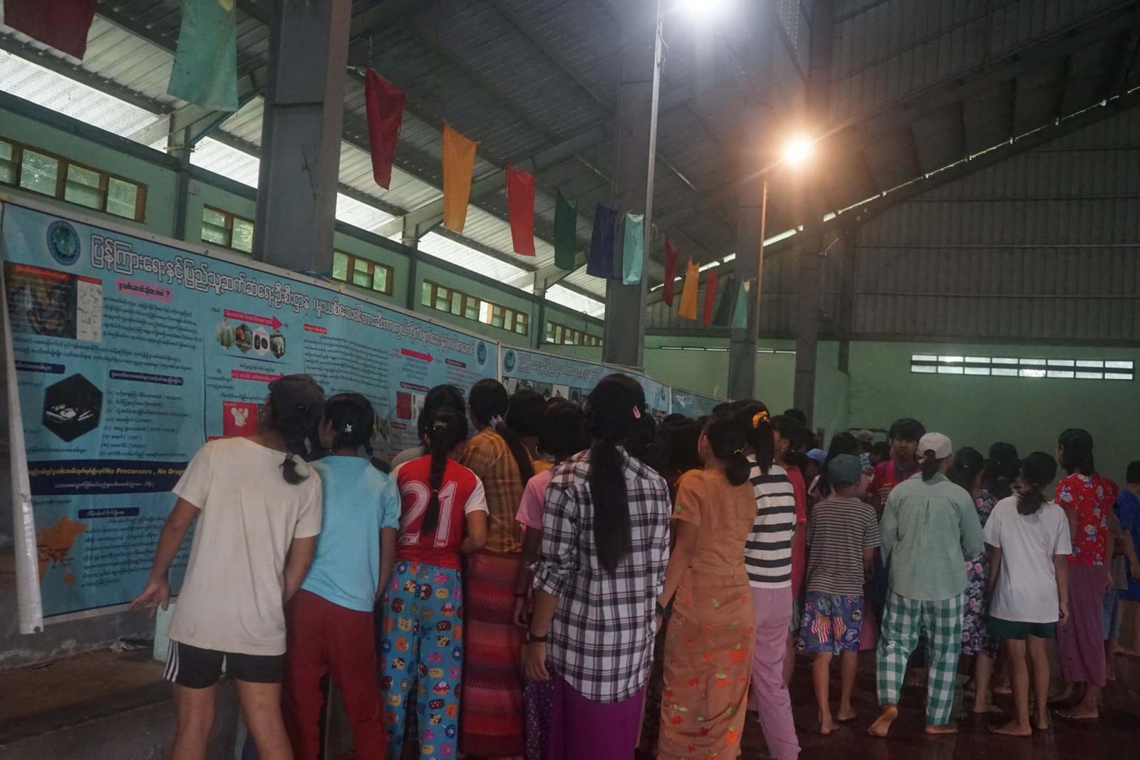 အဆိုပါ အဖွဲ့သည် နံနက် ၁၀ နာရီအချိန်၌ အင်းတော်မြို့နယ် အားကစားနှင့်ကာယပညာဦးစီးဌာန (Youth Camp) မှ လူငယ်လူရွယ် အားကစားသမားများအား မူးယစ်ဆေးဝါး အန္တရာယ်အကြောင်း သိကောင်းစရာများ အသိပညာပေး နံရံကပ်စာစောင်ကို ပြသခဲ့သည်။ ထို့နောက် အင်းတော်မြို့နယ် အားကစားနှင့်ကာယပညာဦးစီးဌာနမှ မြို့နယ်အားကစားမှူး ဒေါ်မြင့်မြင့်စန်းက လူငယ်နှင့်အားကစား အကြောင်းအရာများကိုလည်းကောင်း၊ အင်းတော်မြို့နယ် ပြန်ကြားရေးနှင့်ပြည်သူ့ဆက်ဆံရေးဦးစီးဌာန မြို့နယ်ဦးစီးမှူးက လူငယ်နှင့်မူးယစ်ဆေးဝါးအန္တရာယ်အကြောင်း သိကောင်းစရာများကိုလည်းကောင်း အသိပညာပေး ဟောပြောခဲ့သည်။ ၎င်းနောက် သက်ဆိုင်ရာ အားကစားနည်းများအလိုက် ထောက်ပံ့အားကစားပစ္စည်းများကို မြို့နယ်အားကစားမှူး၊ မြို့နယ် ပြန်/ဆက် ဦးစီးအရာရှိနှင့် အားကစားနည်းပြ ဦးအောင်အောင်တို့က အားကစားသမား လူငယ်လူရွယ်များအား အသီးသီးပေးအပ်ခဲ့ကြောင်း သိရသည်။ ယင်းအသိပညာပေး ဟောပြောပွဲအခမ်းအနားသို့ အင်းတော်မြို့နယ် အားကစားနှင့်ကာယပညာဦးစီးဌာနမှ မြို့နယ်အားကစားမှူးနှင့်ဝန်ထမ်းများ၊ မြို့နယ် ပြန်/ဆက် ဦးစီးအရာရှိနှင့်ဝန်ထမ်းများ၊ အားကစားနည်းပြများ၊ (Youth Camp) မှ အားကစားသမား လူငယ်လူရွယ်များ အင်အား (၁၅၀) ကျော် တက်ရောက်ခဲ့ကြကြောင်း သိရသည်။