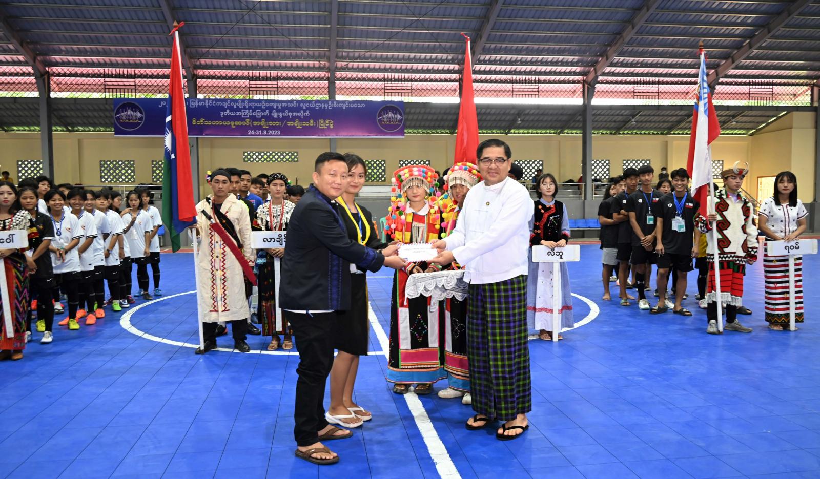 ဖွင့်ပွဲအခမ်းအနားတွင် မြန်မာနိုင်ငံကချင်လူမျိုးရိုးရာယဉ်ကျေးမှုအသင်း (WHG) ဥက္ကဋ္ဌက မျိုးနွယ်စုများအလိုက် ဒုတိယအကြိမ်မြောက် အမျိုးသား/ အမျိုးသမီး မိတ်သဟာယအစီအစဉ်ဖြင့် ဖူဆယ်ဘောလုံးပြိုင်ပွဲ ကျင်းပပြုလုပ်ခြင်း၏ ရည်ရွယ်ချက်များကို ရှင်းလင်းတင်ပြပြီး ပြည်နယ် ဝန်ကြီးချုပ်က ဖူဆယ်ဘောလုံးပြိုင်ပွဲအတွက် ထောက်ပံ့ငွေများကို ထောက်ပံ့ပေးအပ်ကာ မျိုးနွယ်စု များရှိ လူငယ်များအချင်းချင်း ချစ်ခင်ရင်းနှီးစေပြီး စည်းလုံးမှုပိုမိုရရှိစေရန် အားကစားပြိုင်ပွဲ ပြုလုပ် ပေးခြင်းကို ဝမ်းမြောက်ဂုဏ်ယူပါကြောင်း၊ ထို့အပြင် ပြည်နယ်အတွက် ဖူဆယ်ဘောလုံးအားကစား တွင် ထူးချွန်သည့် လူငယ်ကစားသမားများ ပေါ်ထွန်းလာမည်ဖြစ်ကြောင်း အားပေးပြောကြားသည်။