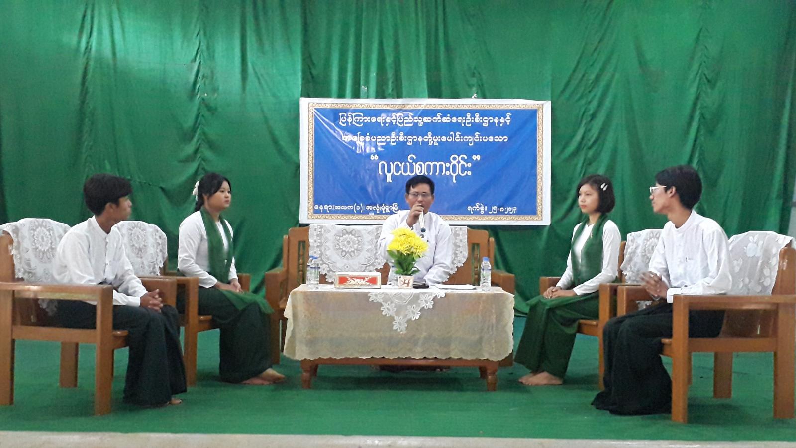 ဆက်လက်ပြီး လူငယ်စကားဝိုင်း ဆွေးနွေးပွဲတွင် မုံရွာခရိုင် ပြန်ကြားရေးနှင့်ပြည်သူ့ဆက်ဆံရေး ဦးစီးဌာန၊ လက်ထောက်ညွှန်ကြားရေးမှူး ဦးမြင့်နိုင်စိုး Moderator အဖြစ် ဆောင်ရွက်ပြီး အမှတ်(၁) အခြေခံပညာ အထက်တန်းကျောင်း(အလုံ)မှ ကျောင်းသား/ ကျောင်းသူ ၄ ဦးတို့က လူငယ်နှင့်စာပေ၊ လူငယ်နှင့်မူးယစ်ဆေး၊ လူငယ်နှင့်အားကစား၊ လူငယ်နှင့်စာရိတ္တ စသည့်ခေါင်းစဉ်များဖြင့် အသီးသီးဆွေးနွေးခဲ့ကြရာ တက်ရောက်လာကြသည့် ကျောင်းသား၊ ကျောင်းသူများက စကားဝိုင်းအတွင်း အပြန်အလှန် မေးမြန်းဆွေးနွေးခဲ့ကြကြောင်း သိရသည်။