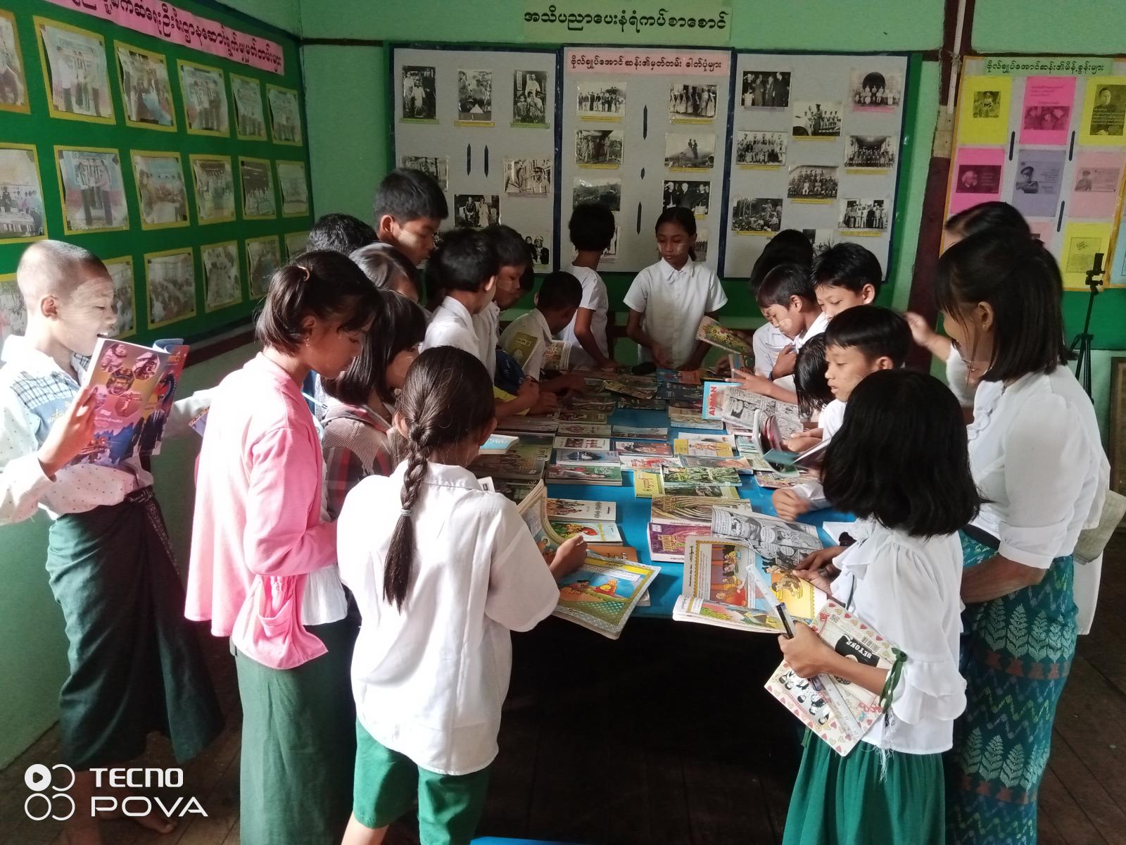 ယင်းနောက် ပြန်ကြားရေးနှင့်ပြည်သူ့ဆက်ဆံရေးဦးစီးဌာနမှ ခင်းကျင်းပြသထားသည့် အသိပညာပေး နံရံကပ်စာစောင်၊ သုတ၊ ရသစာအုပ်များနှင့် အခြားစိတ်ဝင်စားမည့် စာအုပ်များလည်း ခင်းကျင်းပြသထားရာ ကျောင်းသား၊ ကျောင်းသူများက စိတ်ပါဝင်စားစွာ ကြည့်ရှုလေ့လာခဲ့ကြောင်း သိရသည်။
