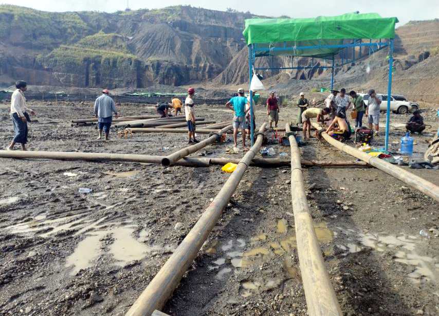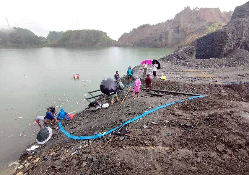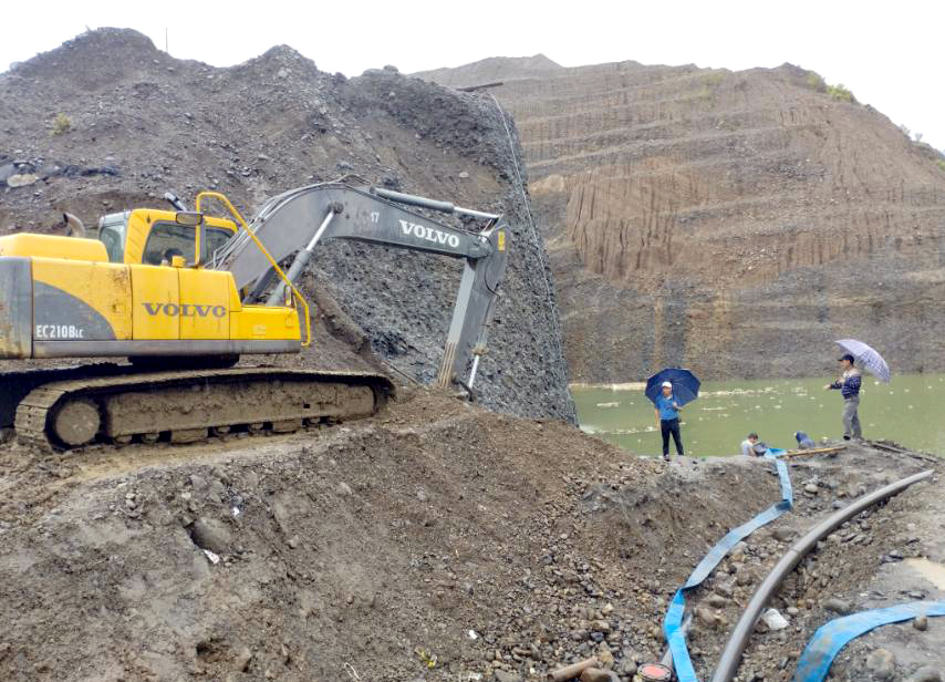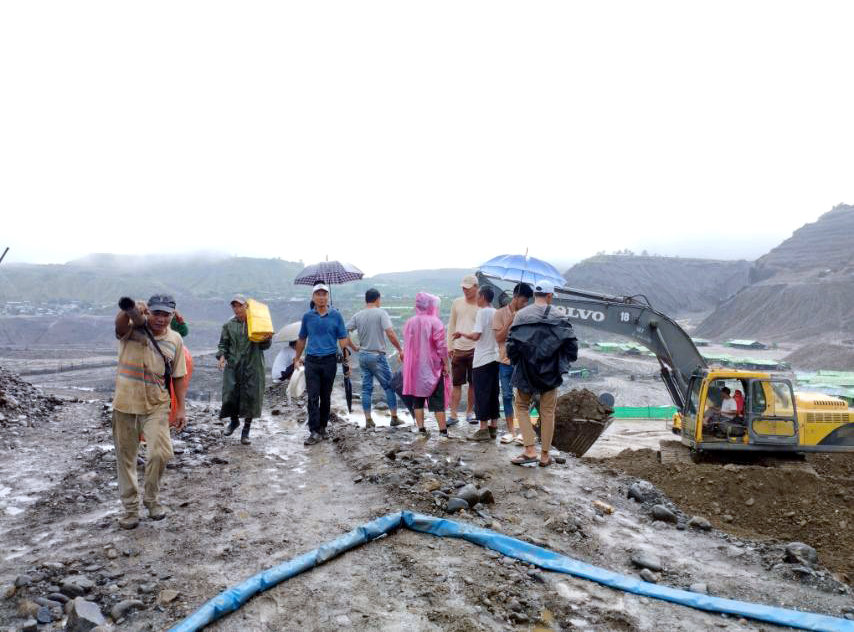 ကချင်ပြည်နယ်၊ မိုးညှင်းခရိုင်၊ ဖားကန့်မြိုနယ်အတွင်းရှိ ကျောက်စိမ်းတောင်ကုမ္ပဏီလုပ်ကွက် ကျင်းဟောင်းရေကန် သဘာဝဘေးအန္တရာယ် မဖြစ်ပေါ်စေရေးအတွက် Siphon နည်း ရေပိုက်ဆက်၍ ရေစုပ်ထုတ်ခြင်းနှင့် ရေစီးကြောင်းဖောက်ချခြင်းနည်းလမ်း နှစ်မျိုးတို့ဖြင့် ယမန်နေ့ နံနက်ပိုင်းက ရေကန်အတွင်း၌ ရေဝိတ်လျှော့ချခြင်းလုပ်ငန်း ဆောင်ရွက် လျက်ရှိကြောင်း သိရသည်။ မြို့နယ်အဆင့်ကြီးကြပ်ရေးကော်မတီ၏ ဦးဆောင်မှုဖြင့် ကျေးရွာအဆင့်လုပ်ငန်း အကောင်အထည်ဖော် ဆောင်ရွက်ရေးကော်မတီမှ လုံးခင်း ဖားကန့်တူးဖော်ရေးဌာနက စီမံဆောင်ရွက်ပေးသည့် ကျောက်မျက်ကုမ္ပဏီ (၄) ခု၏ ယာဉ်/ယန္တရား (၄) စီးဖြင့် အကျယ် (၅) ပေ၊ အနက် (၁၀) ပေ၊ အရှည် (၁၁၀၀) ပေခန့်ရှိသော ရေနုတ်မြောင်းဖောက်လုပ်ပြီး ရေကန်အစပ် ဒိုင်ကျန်အမာခံကျောက်ခုံအား အကျယ် (၅) ပေနှင့် အနက် (၆) လက်မနှုန်းဖြင့် ယမန်နေ့ ညနေ ၄ နာရီက ရေစီးကြောင်းများ ဖောက်ချနိုင်ခဲ့သည်။