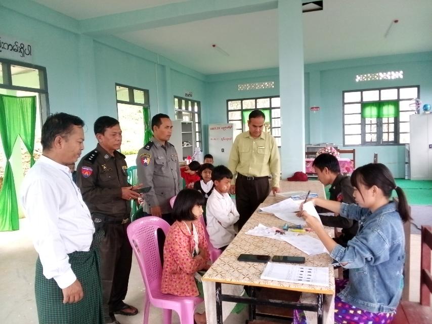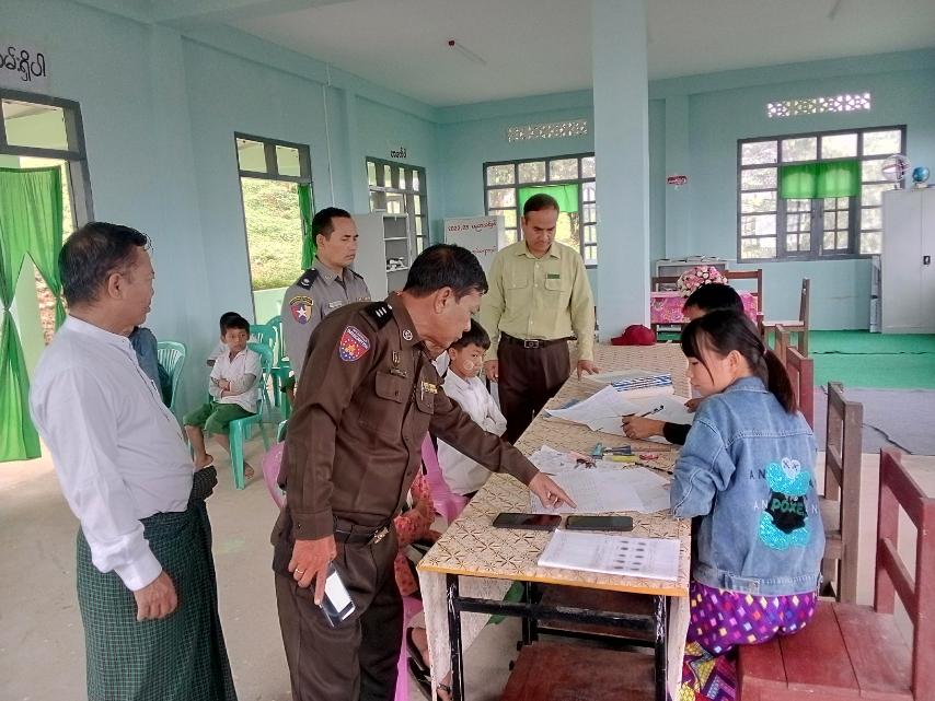 ထိုသို့ ပန်းခင်းစီမံချက်(၂)ဖြင့် နိုင်ငံသားစိစစ်ရေးကတ်ပြားများထုတ်ပေးခြင်း ဆောင်ရွက်ရာတွင် လူဝင်မှုကြီးကြပ်ရေးနှင့်ပြည်သူ့အင်အားဝန်ကြီးဌာန၊မြို့နယ်ဦးစီးမှူးနှင့်ဝန်ထမ်းများက အခြေခံပညာအထက်တန်းကျောင်းတွင် မှတ်ပုံတင်မရှိသေးသည့် အသက်(၁၀)နှစ်ပြည့်ပြီးသူ ကျောင်းသား(၈)ဦးနှင့် ကျောင်းသူ(၈)ဦး စုစုပေါင်း(၁၆)ဦးတို့အား နိုင်ငံသားစိစစ်ရေးကတ်ပြားများ ကွင်းဆင်းဆောင်ရွက်ပေးခဲ့ကြောင်း သိရသည်။