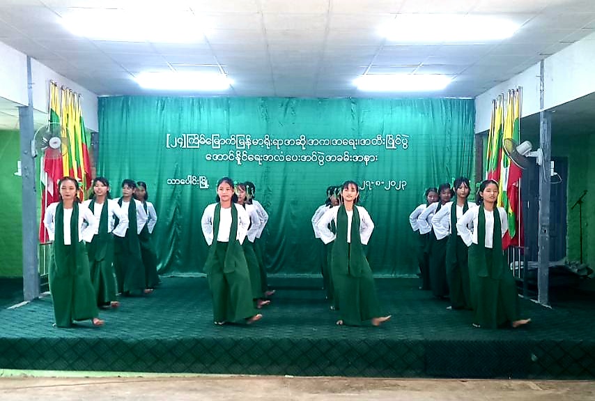 အောင်နိုင်ရေးအလံပေးအပ်ပွဲအခမ်းအနားတွင် မြို့နယ်စီမံအုပ်ချုပ်ရေးအဖွဲ့ ဥက္ကဋ္ဌဦးမင်းဧရာထိုက်မှ (၂၄)ကြိမ်မြောက်အဆို၊ အက၊ အရေး၊ အတီးပြိုင်ပွဲ ပုသိမ်ခရိုင်အဆင့် ဝင်ရောက်ယှဥ်ပြိုင်မည့် ပြိုင်ပွဲဝင်များနှင့် အကအဖွဲ့များအား အမှာစကားပြောကြားပြီးနောက် ယိမ်းအကအဖွဲ့မှ ကဗျာလွတ်အကဖြင့် ကပြဖျော်ဖြေတင်ဆက်ခဲ့ကြသည်။