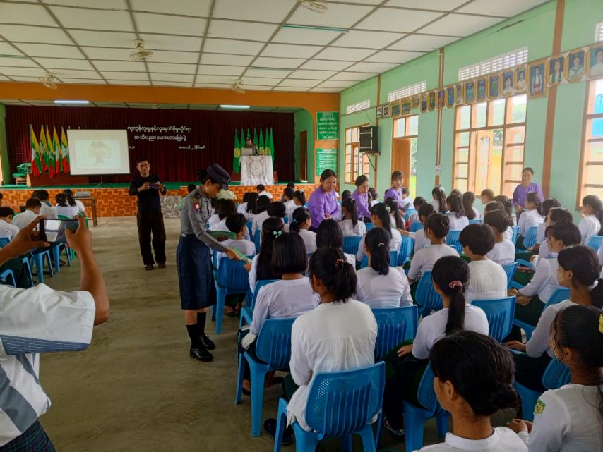 ထို့နောက် တက်ရောက်လာကြသော မြို့နယ်စီမံအုပ်ချုပ်ရေးအဖွဲ့ဥက္ကဋ္ဌနှင့် အဖွဲ့ဝင်များ သက်ဆိုင်ရာ ဌာနဆိုင်ရာများ ကျောင်းသား၊ ကျောင်းသူများအား လူကုန် ကူးမှုတားဆီးနှိမ်နင်းရေး ဥပဒေပြဋ္ဌာန်းချက် လက်ကမ်းစာစောင်များကို ဖြန့်ဝေပေးခဲ့ပြီး အမှတ်(၂) အခြေခံပညာ အထက်တန်းကျောင်းမှ ကျောင်းအုပ် ဆရာမကြီးက ကျေးဇူးတင်စကား ပြန်လည်ပြောကြားခဲ့သည်။