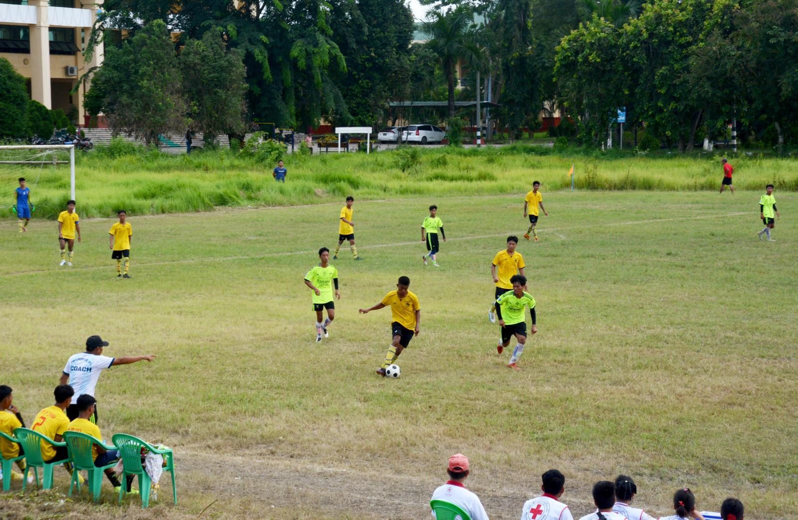 ကချင်ပြည်နယ် မိုးညှင်းမြို့နယ် မိုးညှင်းမြို့တွင် ၂၀၂၃-၂၀၂၄ ပညာသင်နှစ် အသက် (၁၈) နှစ်အောက်နှင့် အရပ်လေးပေကိုးလက်မအောက် အခြေခံပညာကျောင်းပေါင်းစုံ မိုးရာသီ အမျိုးသားဘောလုံးပြိုင်ပွဲ ဗိုလ်လုပွဲနှင့်ဆုချီးမြှင့်ပေးအပ်ပွဲကို မိုးညှင်းတက္ကသိုလ် အားကစားကွင်း၌ ကျင်းပသည်။