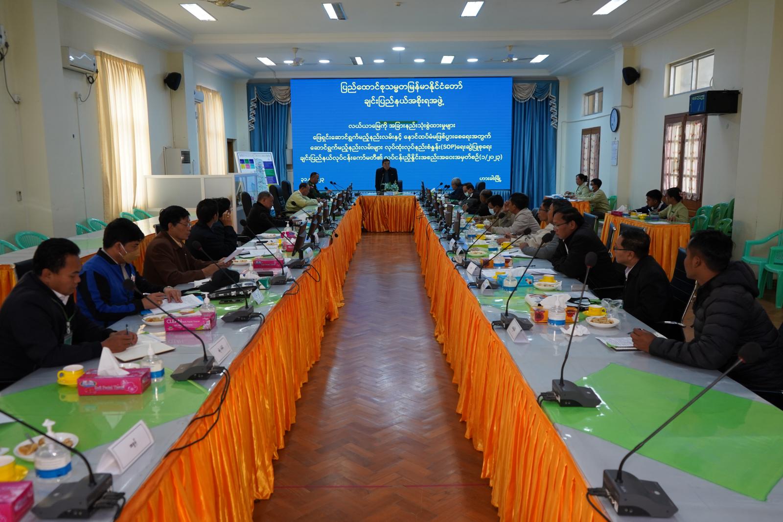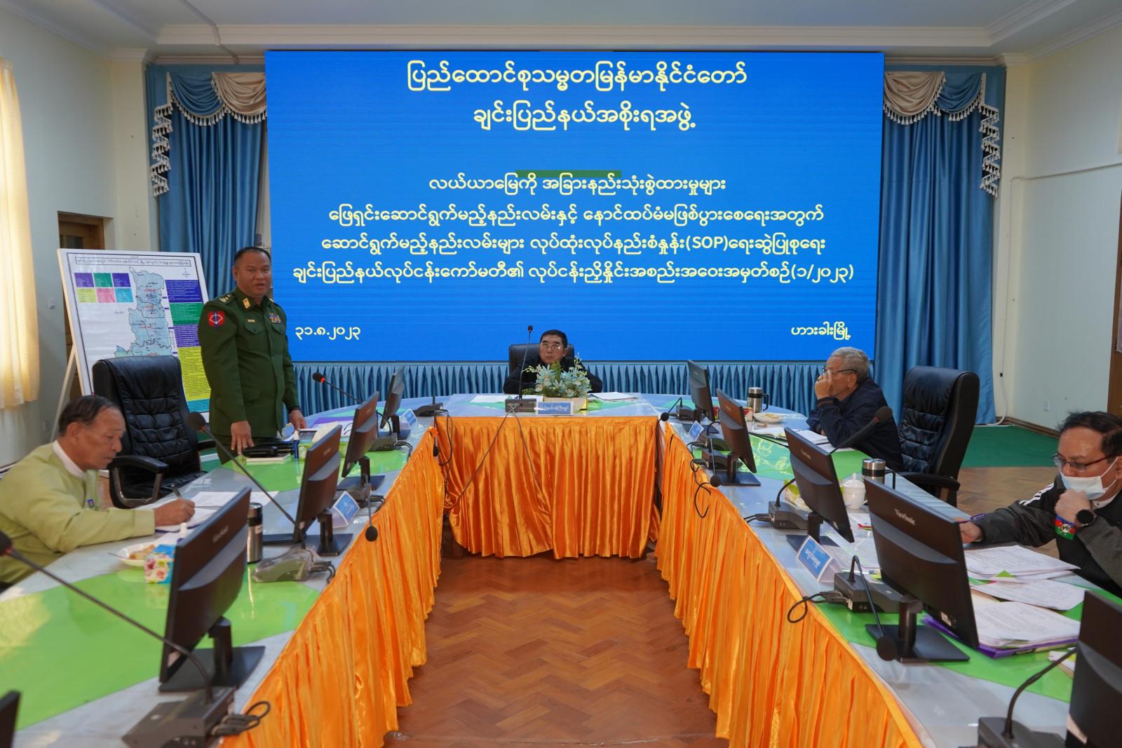 လယ်ယာမြေကို အခြားနည်းသုံးစွဲထားမှုများ ဖြေရှင်းဆောင်ရွက်မည့်နည်းလမ်းနှင့် နောင်ထပ်မံ မဖြစ်ပွားစေရေးအတွက် ဆောင်ရွက်မည့်နည်းလမ်းများ လုပ်ထုံးလုပ်နည်းစံနှုန်း (Standard Operating Procedure – SOP) ရေးဆွဲပြုစုရေး ချင်းပြည်နယ်လုပ်ငန်းကော်မတီ၏ လုပ်ငန်းညှိနှိုင်း အစည်းအဝေးအမှတ်စဉ်(၁/၂၀၂၃)ကို သြဂုတ်လ ၃၁ ရက် နံနက် ၁၀ နာရီက ချင်းပြည်နယ်အစိုးရ အဖွဲ့ရုံးအစည်းအဝေးခန်းမ၌ ကျင်းပသည်။