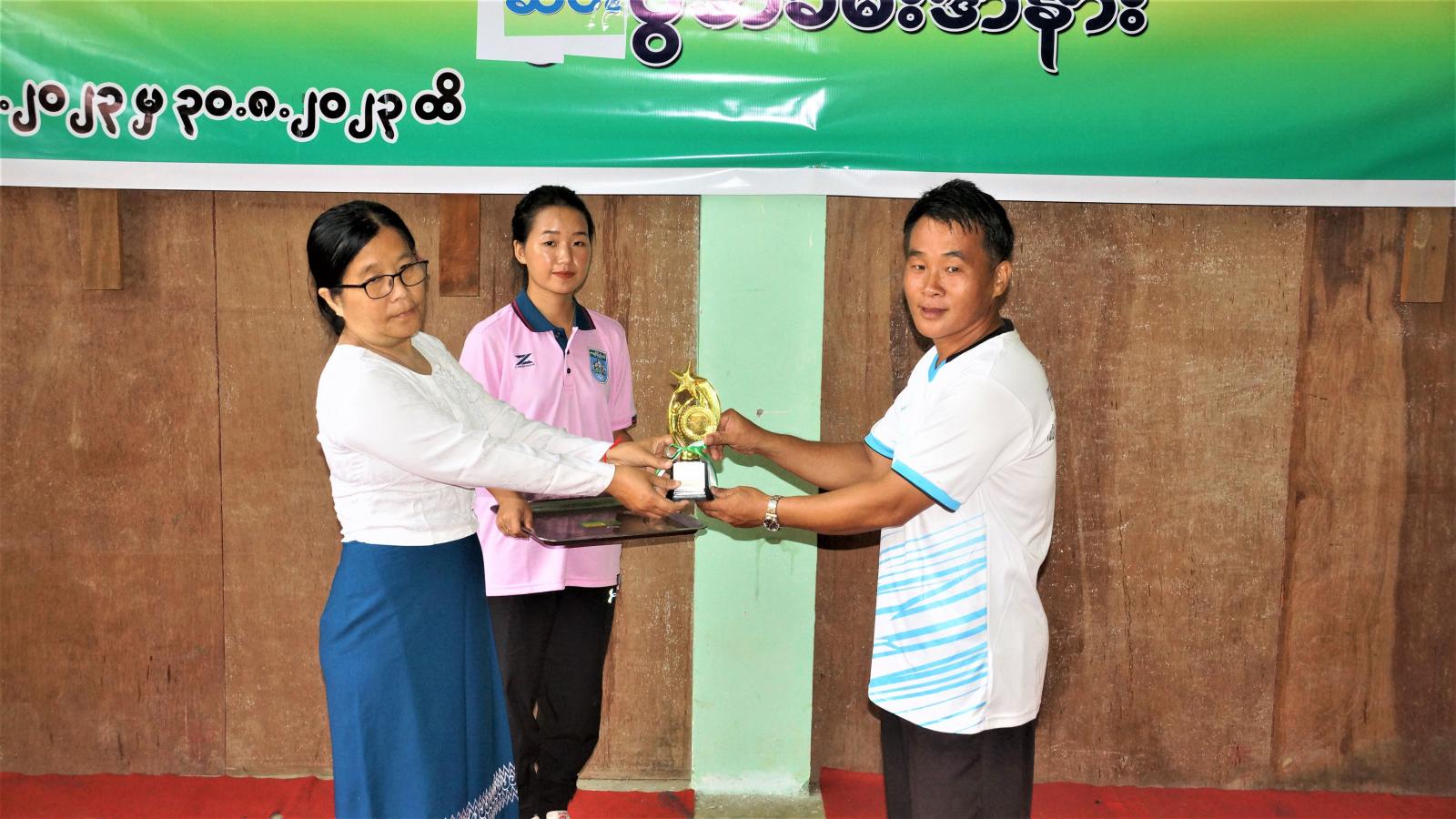 ဆက်လက်၍ ခရိုင်စီမံအုပ်ချုပ်ရေးအဖွဲ့ အဖွဲ့ဝင် ဦးမယစ်ယောရှု၊ မြို့နယ်စီမံအုပ်ချုပ်ရေးအဖွဲ့ဥက္ကဋ္ဌ ဦးကျော်ကျော်လွင်နှင့် တာဝန်ရှိသူများက သင်တန်းဆင်းလက်မှတ်များ၊ လက်တွေ့အမှတ် အများဆုံးဆုနှင့် ရေးဖြေအမှတ်အများဆုံးဆုများကို အသီးသီးပေးအပ်ချီးမြှင့်ခဲ့ကြပြီး သင်တန်း သားများကိုယ်စား သင်တန်းသား ဦးရင်ထန်ခင်ဗေးနှင့် ပူတာအိုမြို့နယ် ဘောလုံးဒိုင်အဖွဲ့ဥက္ကဋ္ဌ ဦးဘရန်နန်တို့က ကျေးဇူးတင်ဝမ်းမြောက် စကားပြောကြားကာ စုပေါင်းမှတ်တမ်းတင်ဓာတ်ပုံရိုက် ကူးခဲ့ကြ ကြောင်း သိရသည်။