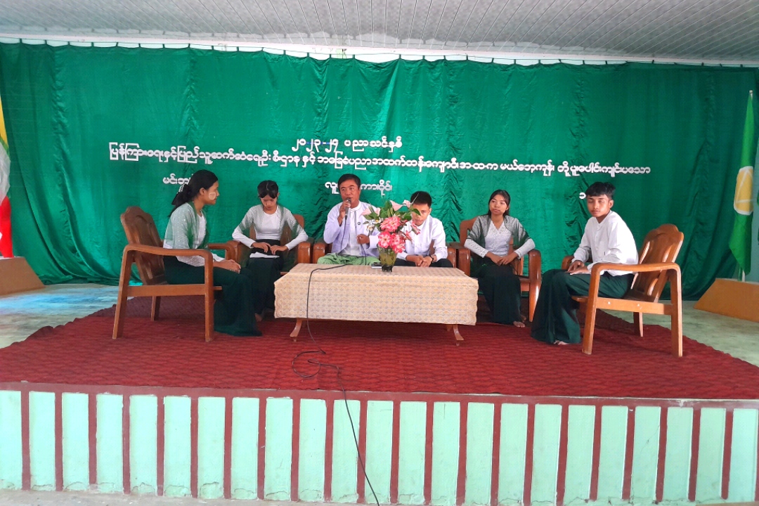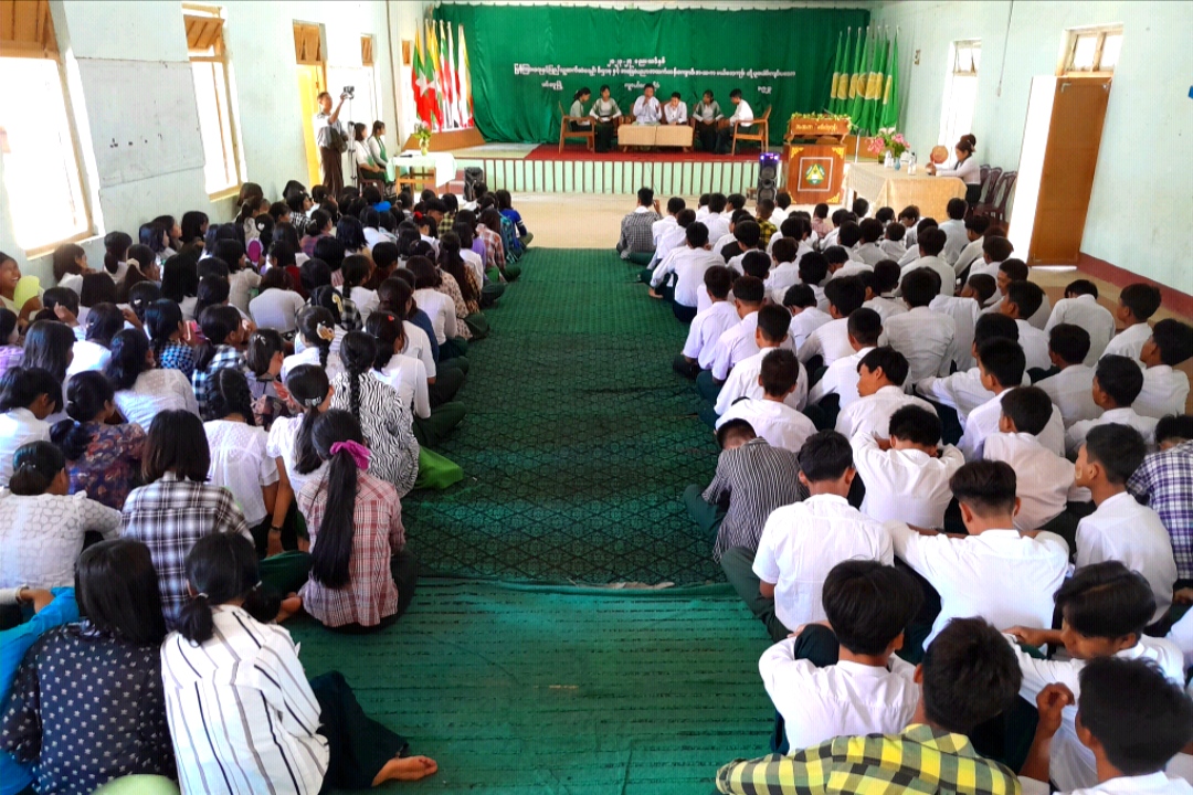 မကွေးတိုင်းဒေသကြီး၊ မင်းဘူးခရိုင်၊ မင်းဘူး(စကု)မြို့နယ် မယ်ဘေ့ကုန်းကျေးရွာ အခြေခံပညာ အထက်တန်းကျောင်းတွင် ပြန်ကြားရေးနှင့်ပြည်သူ့ဆက်ဆံရေးဦးစီးဌာနနှင့် ပညာရေးဌာနတို့ ပူးပေါင်း ကျင်းပသော လူငယ်စကားဝိုင်းကို စက်တင်ဘာ ၁ ရက် နံနက် ၁၀ နာရီက ကျောင်းအစည်းအဝေးခန်းမ၌ ကျင်းပပြုလုပ်ခဲ့သည်။
