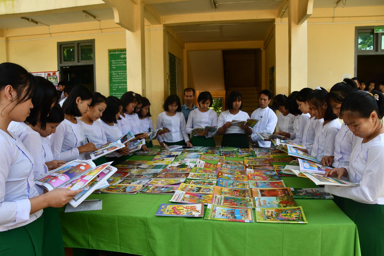ယင်းနောက် ခရိုင်ပြန်ကြားရေးနှင့်ပြည်သူ့ဆက်ဆံရေးဦးစီးဌာနမှ ဝန်ထမ်းများက ခင်းကျင်းပြသထားသည့် "လူကုန်ကူးခြင်းဆိုင်ရာ" အသိပညာပေးနံရံကပ်စာစောင်၊ "ကလေးသူငယ် အလုပ်သမားပပျောက်ရေး"ဆိုင်ရာ အသိပညာပေးနံရံကပ်စာစောင်၊ "ရှောင်လေဝေးဝေးမူးယစ်ဆေး" နံရံကပ်စာစောင်နှင့် ကိုဗစ်-၁၉ ရောဂါကာကွယ်ရေးဆိုင်ရာ အသိပညာပေးနံရံကပ်စာစောင်များ၊ အသိပညာဗဟုသုတရရှိစေသည့် သုတ/ရသ စာအုပ်စာစောင်များကို ကျောင်းသား၊ ကျောင်းသူများက စိတ်ဝင်တစား ဖတ်ရှုလေ့လာခဲ့ကြောင်း သိရသည်။