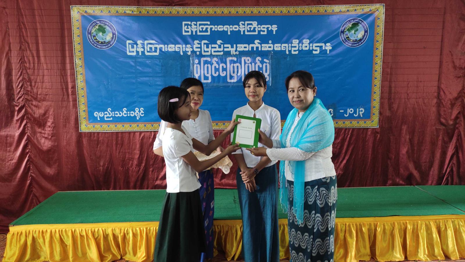 ထို့နောက် ရမည်းသင်းခရိုင် ပြန်ကြားရေးနှင့်ပြည်သူ့ဆက်ဆံရေးဦးစီးဌာနမှ ပြသထားသည့် သုတ၊ ရသစာအုပ်များနှင့် အသိပညာပေးနံရံကပ်စာစောင်များအား ကျောင်းသား၊ကျောင်းသူများက စိတ်ပါဝင်စားစွာကြည့်ရှုခဲ့ကြကြောင်း သိရသည်။