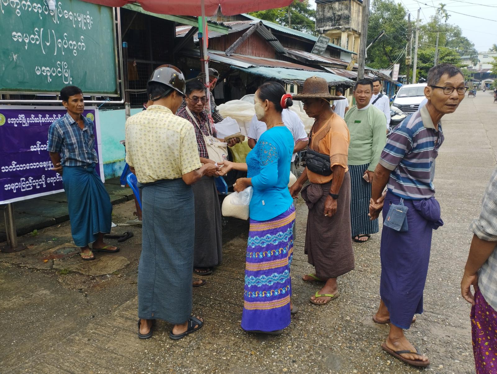 ဧရာဝတီတိုင်းဒေသကြီး၊ မအူပင်ခရိုင်၊ မအူပင်မြို့၊ အမှတ်(၃)ရပ်ကွက် မင်းဧရာတံတားအနီး အခွန်လွတ် ဈေး၊ အမှတ် (၂)ရပ်ကွက်၊ အမှတ်(၁၁) ရပ်ကွက်နှင့် ရေလဲကလေးကျေးရွာရှိ ပြည်သူများအား သက်သာသော ဈေးနှုန်းဖြင့် ဝယ်ယူစားသုံးနိုင်ရန်အတွက် ယမန်နေ့ နံနက်ပိုင်းက စားအုန်းဆီနှင့် ဆန်များအား ရောင်းချ ပေးခဲ့သည်။