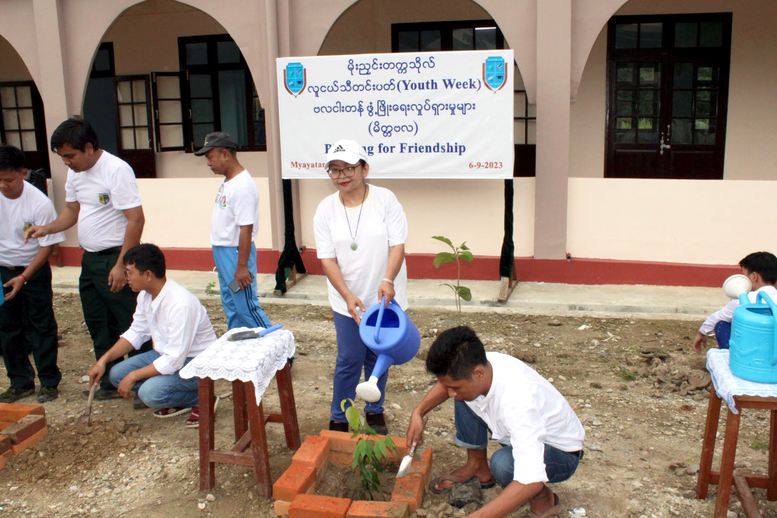 ထို့နောက် တက္ကသိုလ်ပါမောက္ခချုပ်၊ ဒုတိယပါမောက္ခချုပ်နှင့် မြို့နယ်သစ်တော်ဦးစီးဌာနမှ မြို့နယ်ဦးစီးမှူး ဦးဇော်ကိုကိုဝင်းတို့က သစ်ပင် စိုက်ပျိုးကြမည့် ပျိုးပင်များကို ကျောင်းသား ကျောင်းသူ များအား အသီးသီးပေးအပ်ကြပြီးနောက် တက်ရောက်လာကြသူများက သတ်မှတ် နေရာများတွင် ကံ့ကော် (၁၀၀)၊ ကျွန်း(၃၀)၊ ယမနေ(၂၀)၊ ပျဉ်းကတိုး (၁၀)၊ ယင်းမာ (၁၀)၊ မန်ဂျန်ရှား (၁၀)၊ ခရေ (၂၀) စုစုပေါင်းပျိုးပင် (၂၀၀)ကို တပျော်တပါး စုပေါင်းစိုက်ပျိုးခဲ့ကြကြောင်း သိရသည်။