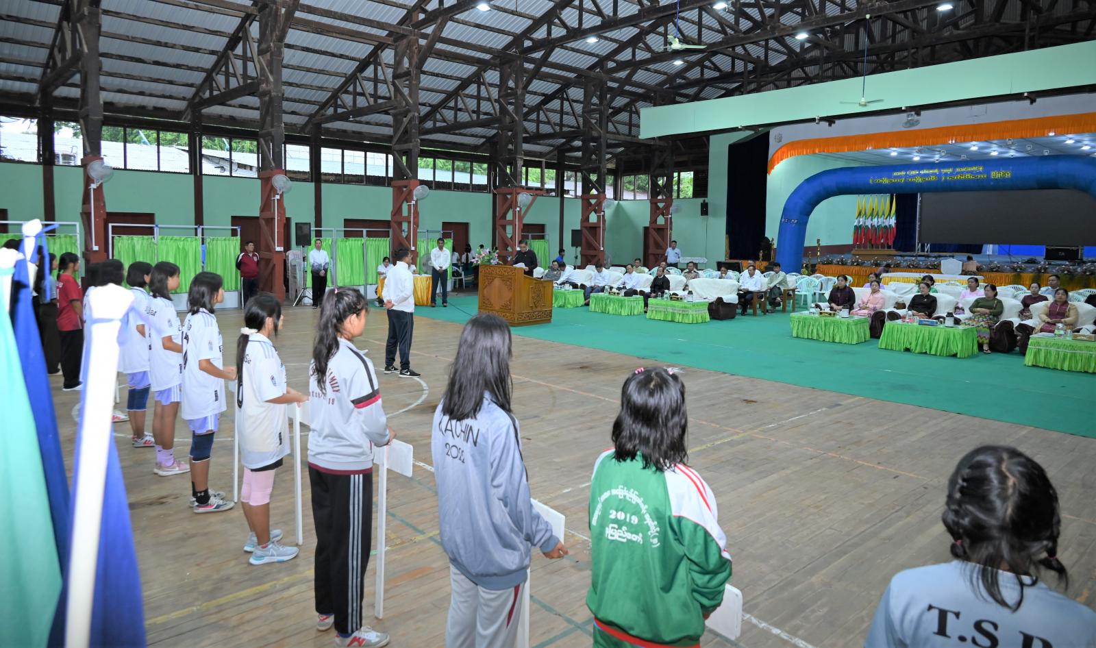 ကချင်ပြည်နယ်အားကစားနှင့် ကာယပညာဦးစီးဌာန၊ ပြည်နယ်ဘောလီဘော ဆပ်ကော်မတီတို့ ပူးပေါင်းကျင်းပသည့် ပြည်နယ်ဝန်ကြီးချုပ် ဖလား အသက် (၂၅)နှစ်အောက် ကလပ်အသင်းပေါင်းစုံ (အမျိုးသား/အမျိုးသမီး) ဘောလီဘောပြိုင်ပွဲ ဖွင့်ပွဲအခမ်းအနားကို ယနေ့ နံနက် ၉ နာရီ က ပြည်သူ့အားကစားကွင်းအတွင်း မိုးလုံလေလုံအားကစားခန်းမ၌ ကျင်းပသည်။