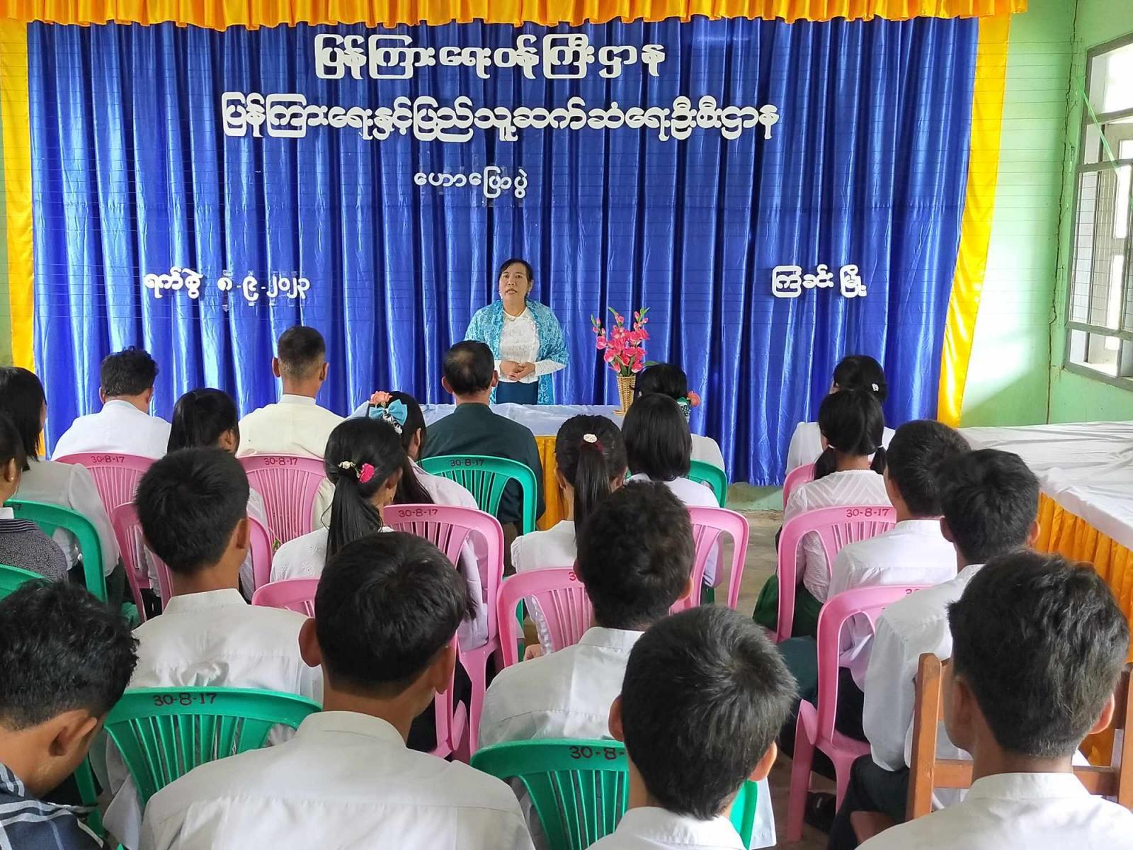 ရှေးဦးစွာ အသိပညာပေးဟောပြောပွဲကျင်းပရာ မြို့နယ်ပြန်ကြားရေးနှင့်ပြည်သူ့ဆက်ဆံရေးဦးစီးဌာန မြို့နယ်ဦးစီးအရာရှိ ဒေါ်ခင်မိုးမြင့်က အထိမ်းအမှတ်နေ့ပွဲများကျင်းပပေးခြင်းဖြင့် ကျောင်းသား/သူများ၏ မှတ်ဉာဏ်ဖွံ့ဖြိုးတိုးတက်စေမှာဖြစ်ပြီး၊ လေ့လာမှတ်သားတတ်သော အလေ့အထကောင်းများ ရရှိစေရန် ရည်ရွယ်ကျင်းပခြင်းဖြစ်ကြောင်း ပြောကြားပါသည်။