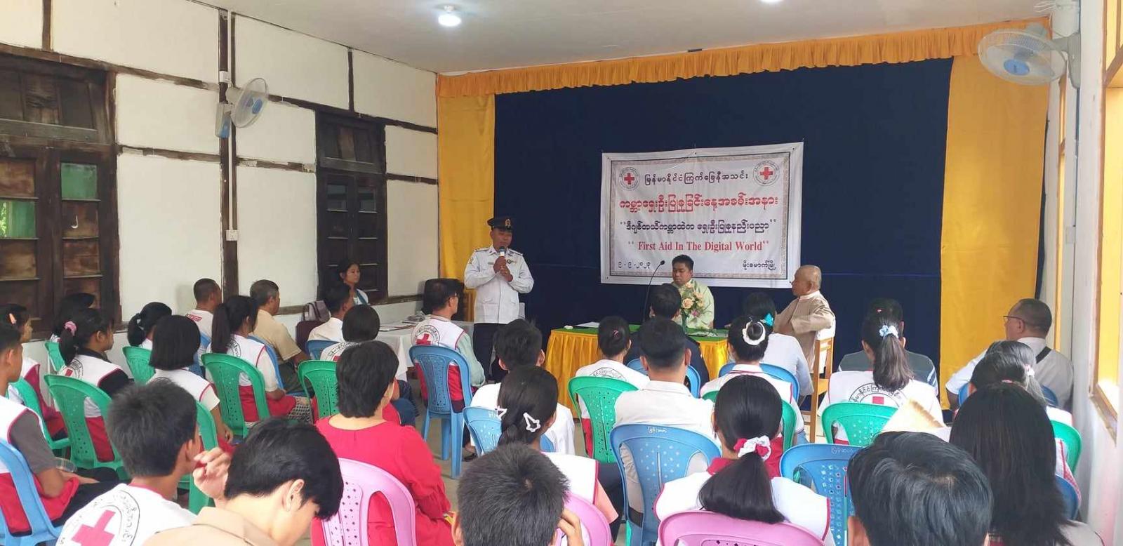 ထို့နောက် မြို့နယ်ကြက်ခြေနီတပ်ဖွဲ့ မြို့နယ်တပ်ဖွဲ့မှူး ဦးလှိုင်ကြူမှ ကြက်ခြေနီတပ်ဖွဲ့၏ ဂုဏ်ယူဖွယ်သမိုင်းကြောင်းနှင့် မြို့နယ်ကြက်ခြေနီတပ်ဖွဲ့အနေဖြင့် မြို့နယ်၏အကျိုးကို စွမ်းစွမ်းသမန်သယ်ပိုးဆောင်ရွက်နေကြောင်းနှင့် ကမ္ဘာ့ရှေးဦးပြုစုခြင်းနေ့သည် ကမ္ဘာတစ်ဝှစ်လုံးရှိ ကြက်ခြေနီအသင်း/အဖွဲ့များကို ဂုဏ်ပြုသောနေ့ထူးနေ့မြတ်ဖြစ်ပြီး “First Aid In The Digital World” ဆိုင်ရာအကြောင်းများကို အကျယ်တဝင့်ပြောကြားခဲ့ကြောင်းနှင့် အဆိုပါ အခမ်းအနားသို့ မြို့နယ်ဌာနဆိုင်ရာများနှင့် ရပ်မိ/ရပ်ဖများ၊ မြို့နယ် ကြက်ခြေနီတပ်ဖွဲ့ဝင် အသင်းသူ/သား စုစုပေါင်း (၇၂) ဦးခန့်တက်ရောက်ခဲ့ကြောင်း သိရသည်။
