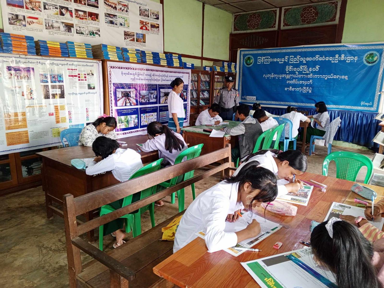 အဆိုပါ စာစီစာကုံးပြိုင်ပွဲသို့ လာရောက်ယှဉ်ပြိုင်ကြသည့် ကျောင်းသား/ကျောင်းသူများမှ ပြည်သူ့စာကြည့်တိုက်ခန်းမတွင် ပြသထားသည့် လူကုန်ကူးမှုအန္တရာယ် အသိပညာပေး နံရံကပ်စာစောင်များ၊ မိုးရာသီအတွင်း ဖြစ်ပေါ်လာမည့် ဆိုင်ကလုံးမုန်တိုင်းနှင့် သဘာဝဘေးအန္တရာယ် ကူညီကယ်ဆယ်ရေးဆောင်ရွက်မှု မှတ်တမ်းဓါတ်ပုံများအား လေ့လာကြည့်ရှုခဲ့ကြောင်း သိရသည်။