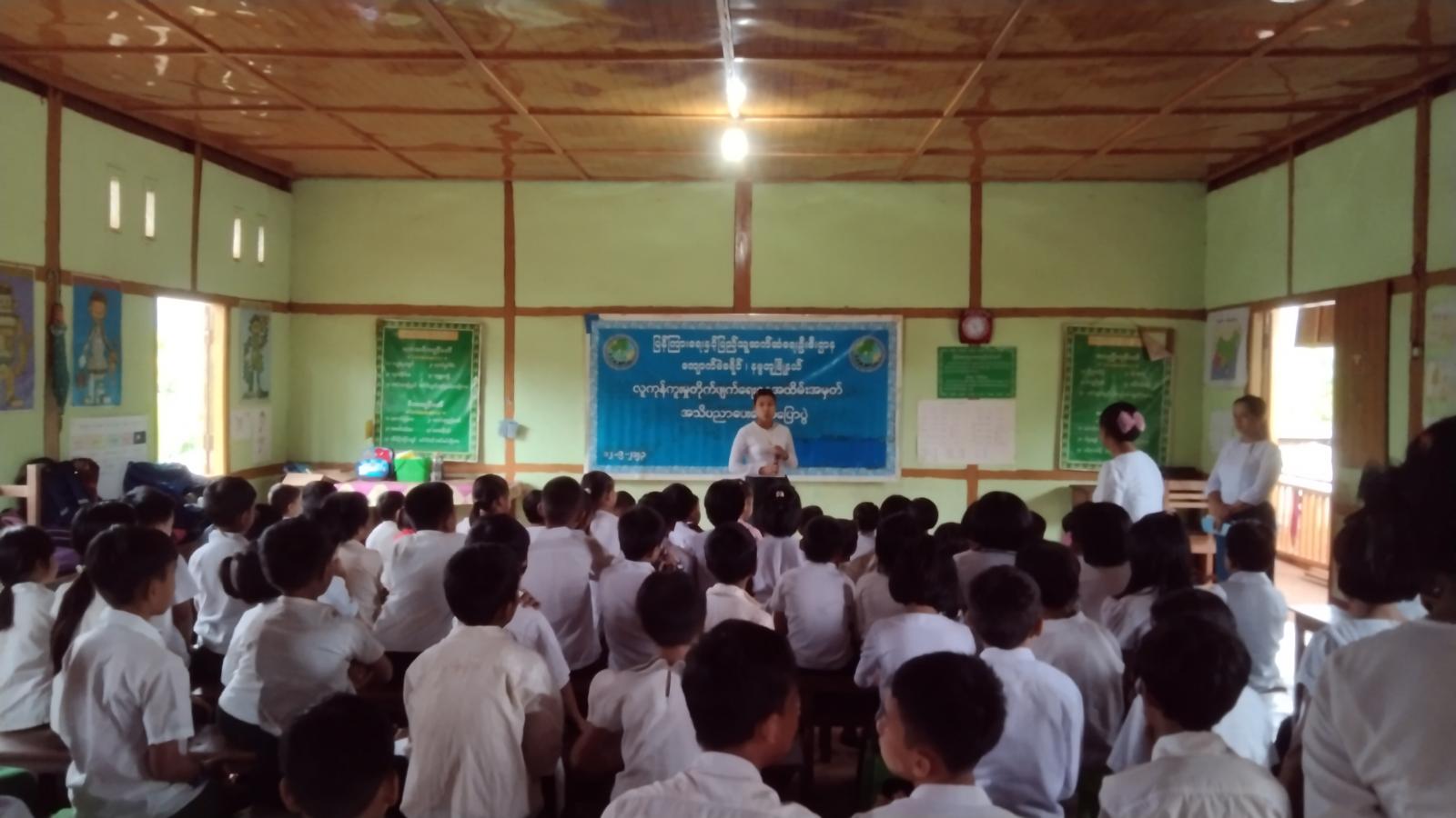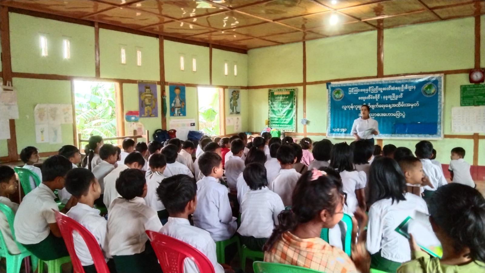 ရှေးဦးစွာ အမှတ် (၉) အခြေခံပညာမူလတန်းကျောင်းမှ ကျောင်းအုပ်ဆရာမကြီး ဒေါ်ခိုင်ဇင်နွယ်ဦးက အမှာစကားပြောကြားပြီး မြို့နယ် ပြန်ကြားရေးနှင့်ပြည်သူ့ဆက်ဆံရေးဦးစီးဌာနမှ ဒုတိယဦးစီးမှူး ဒေါ်ချစ်ချစ်ပိုင်က လူကုန်ကူးမှု၊ လူမှောင်ခိုမှု၊ ရွှေ့ပြောင်းသွားလာမှုတို့၏ အဓိပ္ပာယ်ဖွင့်ဆိုချက်များ၊ လူကုန်ကူးမှုတားဆီးကာကွယ်ရေးဥပဒေ ပေါ်ပေါက်လာပုံ၊ လူကုန်ကူးရောင်းဝယ်မှုအခြေအနေနှင့် အမျိုးအစားများ၊ လူကုန်ကူးမှုတားဆီးကာကွယ်ရေးဆိုင်ရာ မြန်မာနိုင်ငံရှိ လက်ရှိဥပဒေ၊ ပြစ်မှုပြစ်ဒဏ်များ၊ လူကုန်ကူးမှုတားဆီးကာကွယ်ရေးဥပဒေနှင့် ဆက်စပ်သည့် တည်ဆဲဥပဒေများ၊ လူကုန်ကူးခံရသူများအား ကာကွယ်စောင့်ရှောက်မှုပေးရန်နှင့် တားဆီးကာကွယ်ခြင်းဆိုင်ရာ ဆောင်ရွက်ရန်နည်းလမ်းများ စသည့်အကြောင်းအရာများအား အသိပညာပေး ဆွေးနွေးပြောကြားခဲ့ရာ တက်ရောက်လာသည့် ကျောင်းသား၊ ကျောင်းသူများက သိရှိလိုသည်များအား မေးမြန်းဆွေးနွေးခဲ့ပြီး ဦးဆောင်ဆွေးနွေးသူက ပြန်လည်ဖြေကြား ဆွေးနွေးပေးခဲ့သည်။