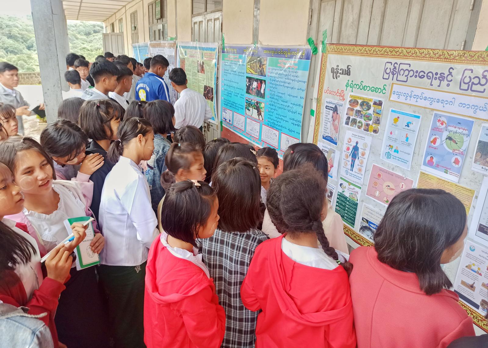 ထို့နောက် ပြန်ကြားရေးနှင့်ပြည်သူ့ဆက်ဆံရေးဦးစီးဌာနမှ ခင်းကျင်းပြသသည့် ယာဥ်စည်းကမ်း၊ လမ်းစည်းကမ်း၊ မူးယစ်ဆေးအန္တရာယ် တားဆီးကာကွယ်ရေး၊ လူကုန်ကူးမှု တားဆီးကာကွယ်ရေး၊ သွေးလွန်တုပ်ကွေးရောဂါ ကြိုတင်ကာကွယ်ရေး အသိပညာပေး နံရံကပ်စာစောင်နှင့် နံရံကပ်ဓာတ်ပုံများကို ကျောင်းသား/ကျောင်းသူများက ကြည့်ရှုလေ့လာ မှတ်သားခဲ့ကြကြောင်း သိရသည်။