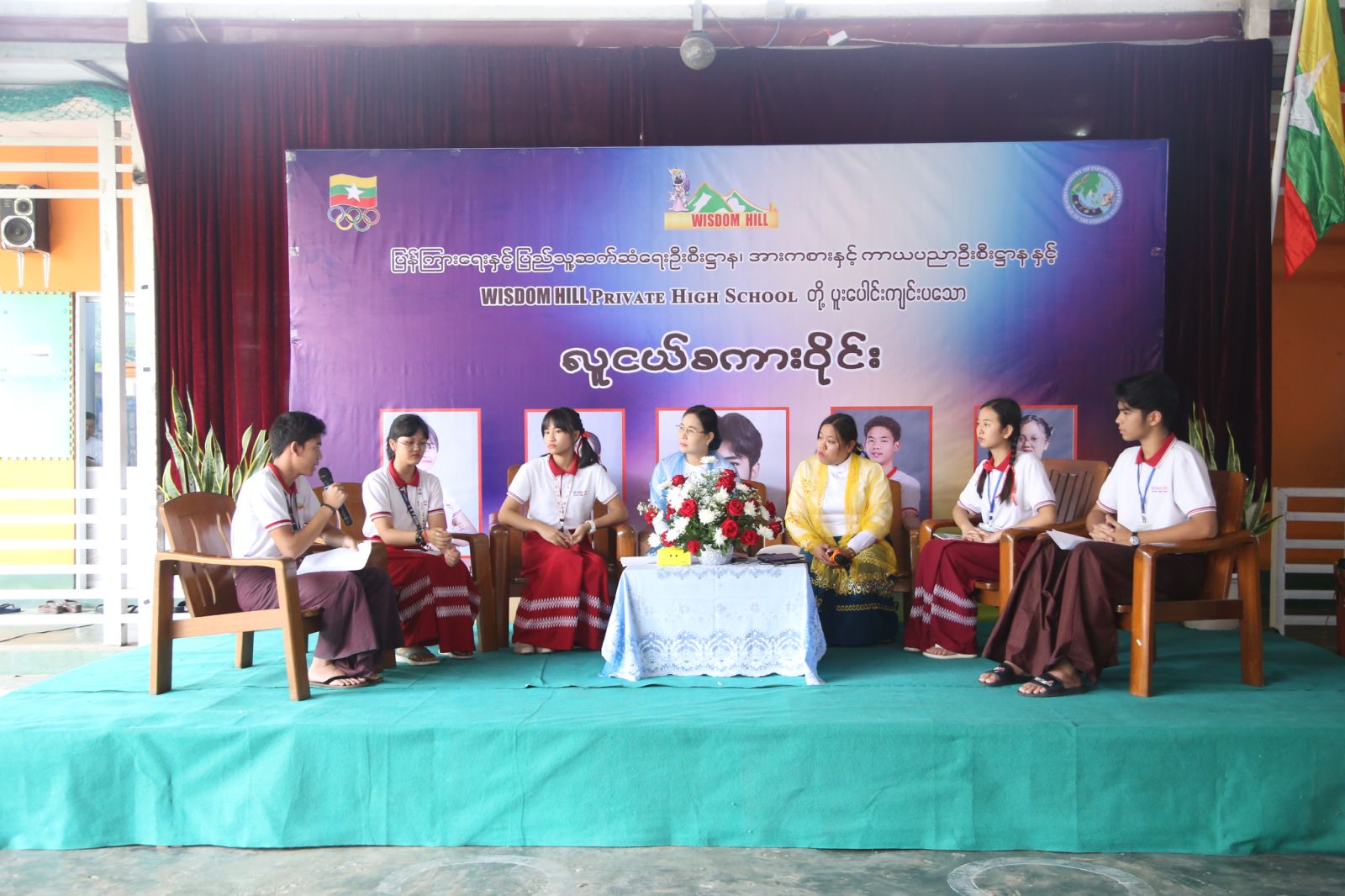 ယင်းနောက် လူငယ်စကားဝိုင်းကျင်းပရာ စေ့စပ်ညှိနှိုင်းရေးမှူးများအဖြစ် ပြန်ကြားရေးနှင့်ပြည်သူ့ဆက်ဆံရေးဦးစီးဌာနမှ ဦးစီးအရာရှိ ဒေါ်နီလာစိုးနှင့် အားကစားနှင့် ကာယပညာဦးစီးဌာနမှ ဦးစီးအရာရှိ ဒေါ်နှင်းမမဦး တို့ကဆောင်ရွက်ပြီး Speaker များအဖြစ် Grade-10 Paris ကျောင်းသူ မဆုမြတ်လင်းစံက လူငယ်နှင့်စာပေ၊ Grade-10 Paris ကျောင်းသူ မမေဘုန်းထွဋ် က လူငယ်နှင့်ကျန်းမာရေး၊ Grade-11 Paris ကျောင်းသူ မနှင်းဧကရီက လူငယ်နှင့်ယဉ်ကျေးမှု၊ Grade-11 Paris ကျောင်းသား မောင်အေးချမ်းပိုင်က လူငယ်နှင့်စာရိတ္တ၊ Grade-10 Paris ကျောင်းသား မောင်ထူးဒီပါတို့က လူငယ်နှင့်အားကစား ခေါင်းစဉ်များဖြင့် အသီးသီးဆွေးနွေးခဲ့ကြပြီး တက်ရောက်လာသော ကျောင်းသား၊ ကျောင်းသူများက ဆွေးနွေးမှုများနှင့်ပတ်သက်၍ သိရှိလိုသည်များကိုမေးမြန်းခဲ့ရာ လူငယ်စကားဝိုင်း ဆွေးနွေးရာတွင် ပါဝင်ဆောင်ရွက်ခဲ့ကြသည့် ကျောင်းသား၊ ကျောင်းသူများနှင့် စေ့စပ်ညှိနှိုင်းရေးမှူးတို့က ပြန်လည်ဖြေကြားပေးခဲ့ပြီး (WISDOM HILL) ကိုယ်ပိုင် အထက်တန်းကျောင်းမှ ကျောင်းအုပ်ဆရာမကြီး ဒေါ်ခင်စမ်းတင့်က ကျေးဇူးတင်စကားပြောကြားခဲ့ကာ အမှတ်တရလက်ဆောင် ပစ္စည်းများပေးအပ်ခဲ့သည်။