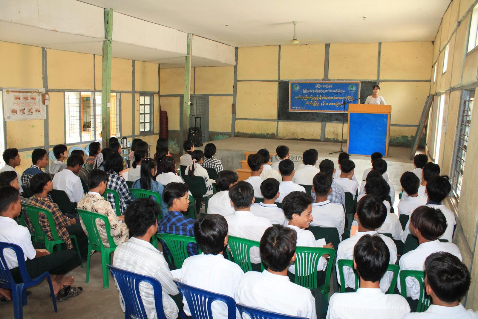အခမ်းအနားတွင် ကျောင်းအုပ်ဆရာမကြီး ဒေါ်စန္ဒာဇော်က အမှာစကားပြောကြားပြီး မြို့နယ်ပြန် ကြားရေးနှင့်ပြည်သူ့ဆက်ဆံရေးဦးစီးဌာနမှ ဒုတိယဦးစီးမှူး ဒေါ်ဝင်းမေထွန်းက ကျောင်းသား၊ ကျောင်းသူများအား လူကုန်ကူးမှုဖြစ်ပွားရသည့် အကြောင်းအရင်းများ၊ လူကုန်ကူးရာတွင် အသုံးပြုသည့် နည်းလမ်းများ၊ လူကုန်ကူးမှုအန္တရာယ်အကြောင်းနှင့် လူကုန်ကူးပါက ကျခံရမည့် ပြစ်မှုပြစ်ဒဏ်များအကြောင်းကို အကျယ်တဝင့် ရှင်းလင်းပြောကြားသည်။