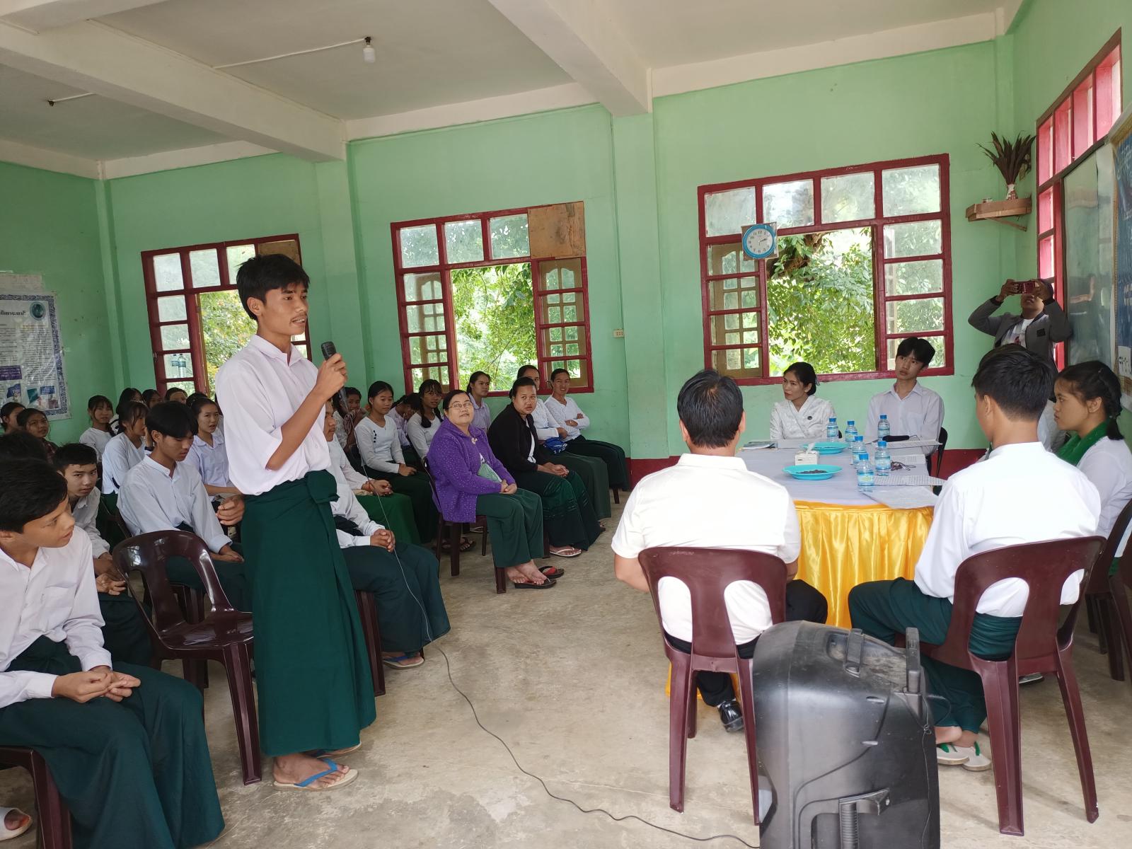 ထို့နောက် မြို့နယ်ပြန်ကြားရေးနှင့်ပြည်သူ့ဆက်ဆံရေးဦးစီးဌာနမှ ဦးဆောင်ဆွေးနွေးသည့် ကျောင်းသား၊ ကျောင်းသူများအား အမှတ်တရ ဂုဏ်ပြုလက်ဆောင်ပစ္စည်းများ အသီးသီးပေးအပ်ရာ သုတရသစာအုပ်စာစောင်များ၊ ကလေးအလုပ်သမားပပျောက်ရေး အသိပညာပေး နံရံကပ်စာစောင်နှင့် လူကုန်ကူးမှုအန္တရာယ် အသိပညာပေးနံရံကပ် စာစောင်များအား ကျောင်းသား၊ ကျောင်းသူများက လေ့လာကြည့်ရှုကြကြောင်း သိရသည်။