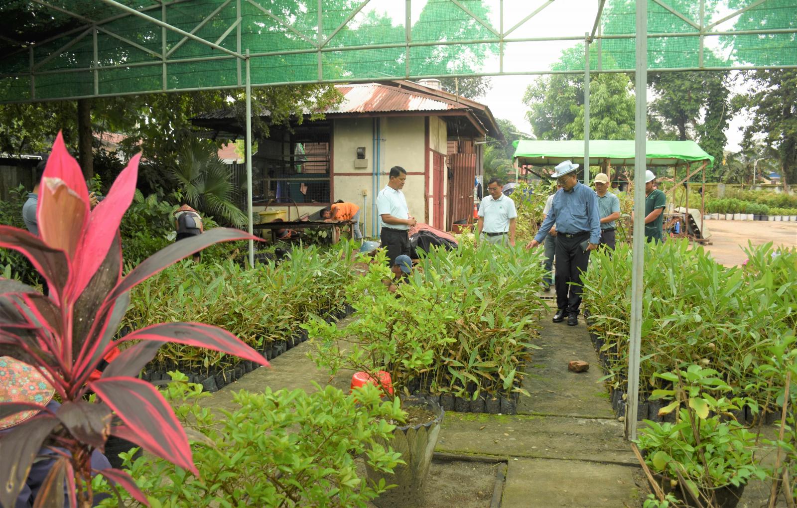 ထိုမှတဆင့် ပြည်နယ်ဝန်ကြီးသည် တပ်ကုန်း(စံပြ)ရပ်ကွက်ရှိ စည်ပင်သာယာရေးအဖွဲ့ပိုင် ပျိုးဥယျာဥ်နှင့် မြို့တော်ခန်းမဝင်းအတွင်းရှိ ပျိုးဥယျာဥ်တို့တွင် ပြည်နယ်၏ မြို့တော်မြစ်ကြီးနားမြို့အား သန့်ရှင်းသပ်ရပ်ပြီး ရာသီအလိုက် အလှပန်းပင်များဖြင့် ပန်းမြို့တော်ဖြစ်လာ စေရေး စိုက်ပျိုးထားရှိသည့် အာဆီယံသပြေ၊ စက္ကူပန်း၊ နွယ်သာဂီ၊ ပန်းရောင်စုံ၊ သပြေဘူတ၊ ချယ်ရီ စသည့် ဒေသနှင့် ကိုက်ညီသည့် အလှပန်းပင်များ (၄၀၀၀၀)ကျော် ပြုစုပျိုးထောင် စိုက်ပျိုးဆောင်ရွက်ထားရှိမှု အခြေအနေများကို လှည့်လည်ကြည့်ရှုစစ်ဆေးခဲ့ကြောင်း သတင်း ရရှိသည်။