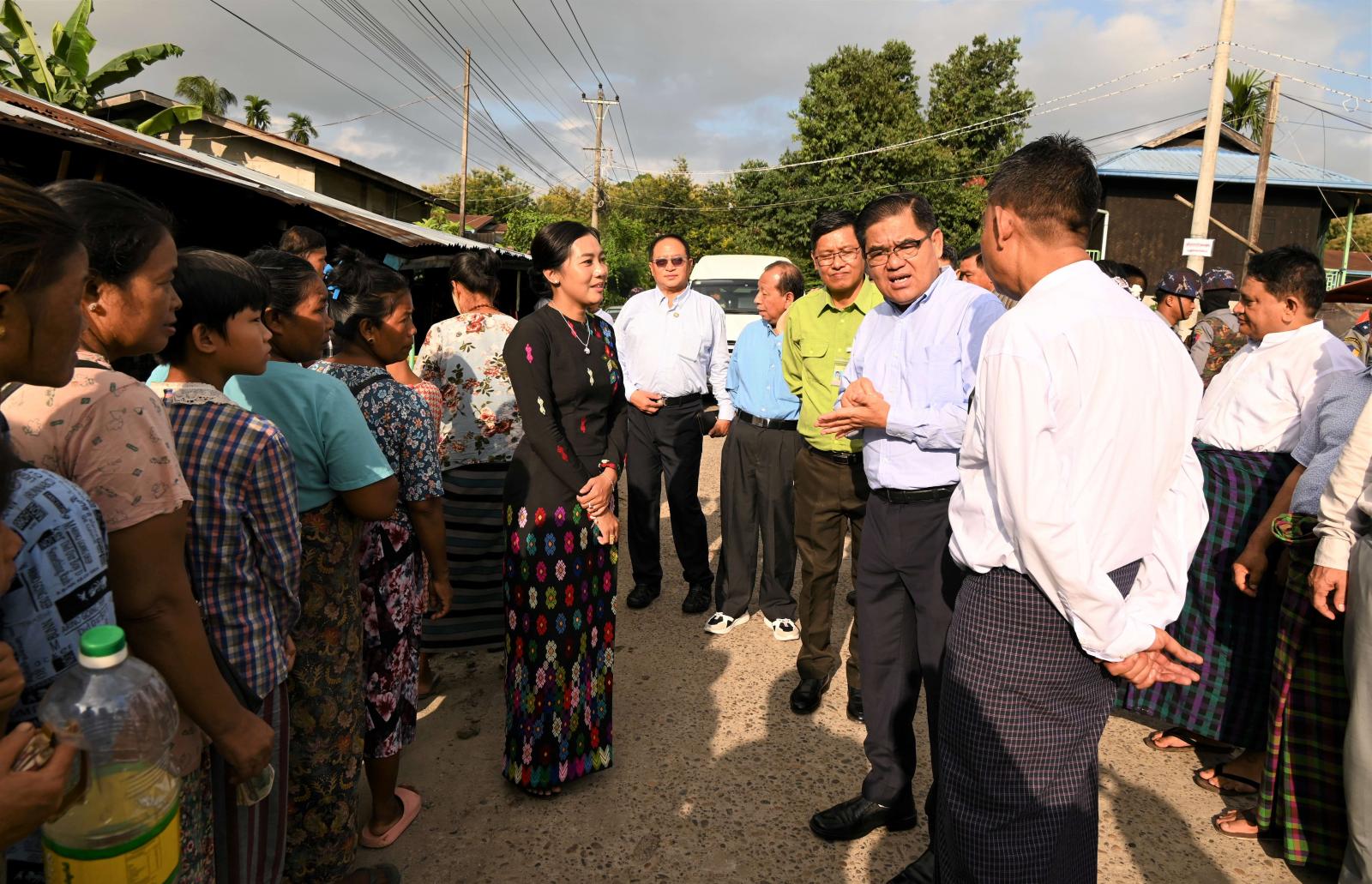 ထိုသို့ ရောင်းချပေးနေမှုများကို ပြည်နယ်ဝန်ကြီးချုပ် ဦးခက်ထိန်နန်၊ ပြည်နယ်တရား လွှတ်တော် တရားသူကြီးချုပ်၊ ပြည်နယ်အစိုးရအဖွဲ့ဝင် ဝန်ကြီးများက သက်သာဈေးတွင် စည်ပင်သာယာရေး အဖွဲ့မှ ကြက်၊ ဝက်၊ အမဲ၊ ငါးများ ရောင်းချပေးနေမှု၊ ပြည်နယ်ဆန်ကုန်သည်ကြီးများ အသင်းမှ မှော်ဘီဆန်ရောင်းချပေးနေမှု၊ ကချင်ပြည်နယ် ဆီကုန်သည်နှင့် ဆီလုပ်ငန်းရှင်များအသင်းမှ စားသုံးဆီလက်လီရောင်းချပေးနေမှု၊ ဌာနဆိုင်ရာများ၊ သမဝါယမအစုအဖွဲ့များ၊ ကိုယ်တိုင်စိုက်ပျိုး ရေးထုတ်လုပ်သူများက ပဲဆီ၊ နှမ်းဆီ၊ နေကြာဆီ၊ ကြက်ဥ၊ ဟင်းသီးဟင်းရွက် များအား ပြည်သူများ စနစ် တကျ စီတန်းဝယ်ယူနေမှုတို့ကို ရင်းရင်းနှီးနှီးလိုက်လံအားပေးနှုတ်ဆက်ခဲ့ကြပြီး ဝယ်ယူရာတွင် တွေ့ကြုံရသည့် အခက်အခဲများကို မေးမြန်းဖြေရှင်းပေးကြကာ ပြည်နယ်ဝန်ကြီးချုပ်က ပြည်သူများ အဆင်ပြေ လွယ်ကူစွာဝယ်ယူနိုင်ရေး စီမံဆောင်ရွက်ပေး သွားရန်၊ စားသုံးဆီများအား ရပ်ကွက်နေ ပြည်သူအားလုံးဝယ်ယူရရှိနိုင်ရေး စနစ်တကျရောင်းချပေးရန်၊ ဟင်းသီးဟင်းရွက်နှင့် သား/ငါးများ အား စားသုံးသူအန္တရာယ်ကင်းရှင်းစေရေး စစ်ဆေးဆောင်ရွက်ပြီးမှ ရောင်းချသွားနိုင်ရေး တာဝန်ရှိသူ များအား မှာကြားခဲ့သည်။