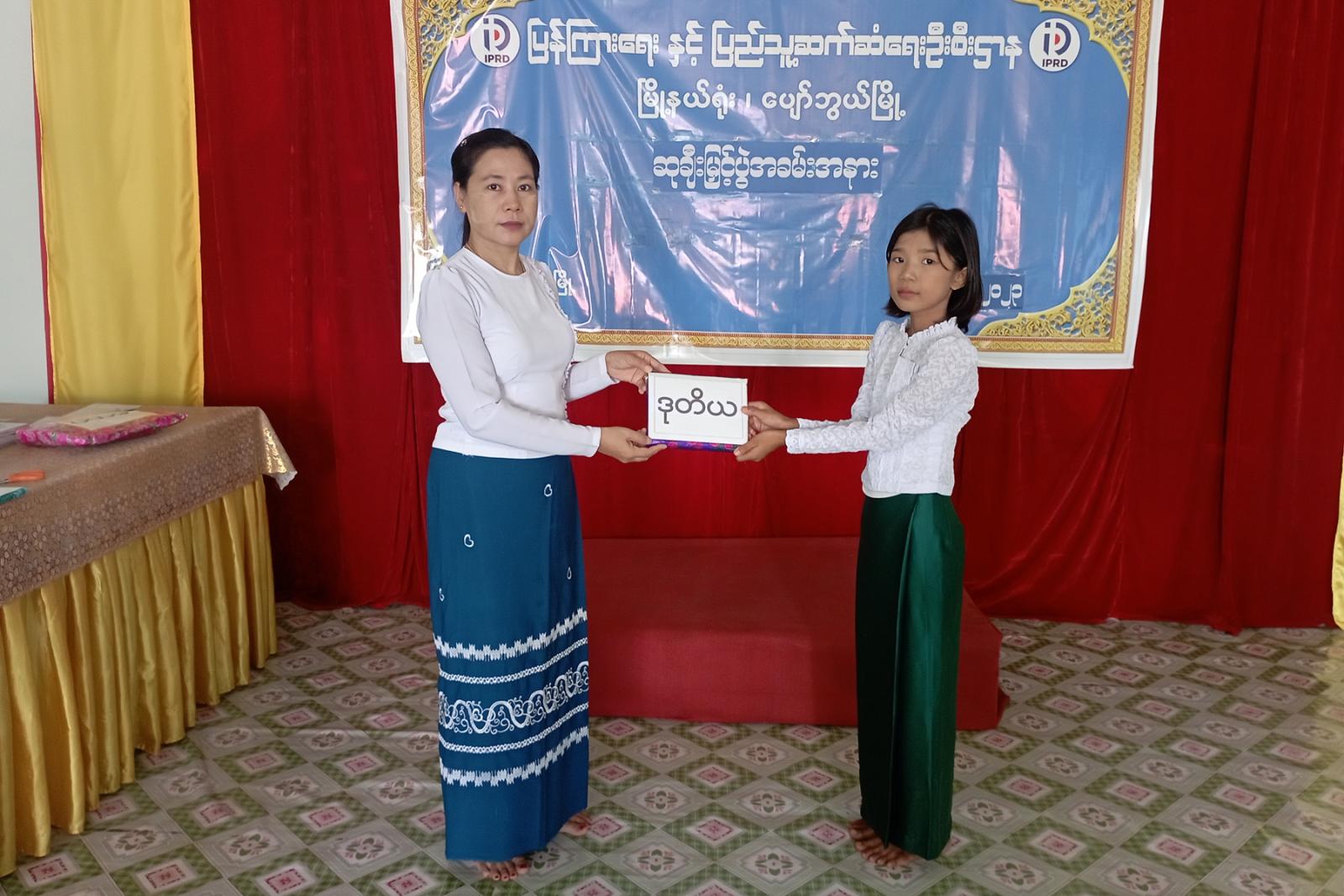 ဆက်လက်၍ မြို့နယ်ဦးစီး ဒေါ်စန်းစန်းကြူနှင့် တာဝန်ရှိသူများက မူလတန်အဆင့် ကဗျာရွတ်ဆိုပြိုင်ပွဲ၊ ပုံပြင်ပြောပြိုင်ပွဲနှင့် အလယ်တန်းအဆင့် စာစီစာကုံးပြိုင်ပွဲတို့တွင် ဆုရရှိသောကျောင်းသား၊ ကျောင်းသူများအား ဆုများပေးအပ်ချီးမြှင့်ကြပြီး အခမ်းအနားသို့ တက်ရောက်လာသူများက မြို့နယ်ရုံးတွင်ပြသထားသည့် နံရံကပ်စာစောင်များ၊ စာအုပ်စာစောင်များကို လေ့လာကြည့်ရှုခဲ့ကြကြောင်း သိရသည်။