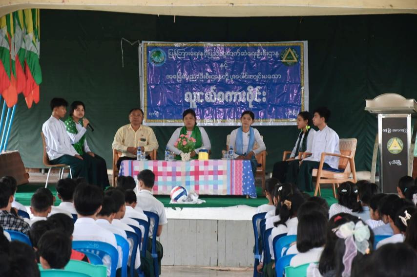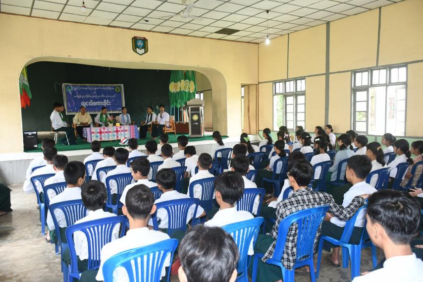 ရှေးဦးစွာ ကျောင်းအုပ်ဆရာမကြီး ဒေါ်သစ်သစ်ဦးက အမှာစကားပြောကြားခဲ့ပြီး ပြန်ကြားရေးနှင့်ပြည်သူ့ဆက်ဆံရေးဦးစီးဌာန၊ ပုသိမ်ခရိုင်ဦးစီးအရာရှိ ဒေါ်ချိုမာထွန်းနှင့် ဦးဆောင်၍ ကျောင်းသား/သူ(၄)ဦးတို့က လူငယ်နှင့်စာပေ၊ လူငယ်နှင့်အားကစား၊ လူငယ်နှင့်စာရိတ္တ၊ လူငယ်နှင့်မူးယစ်ဆေး စသည့်အကြောင်းအရာများအားဆွေးနွေးခဲ့ကြပြီး တက်ရောက်လာသည့် ကျောင်းသား/သူများက အပြန်အလှန် ဝိုင်းဝန်း ဆွေးနွေးခဲ့ကြသည်။