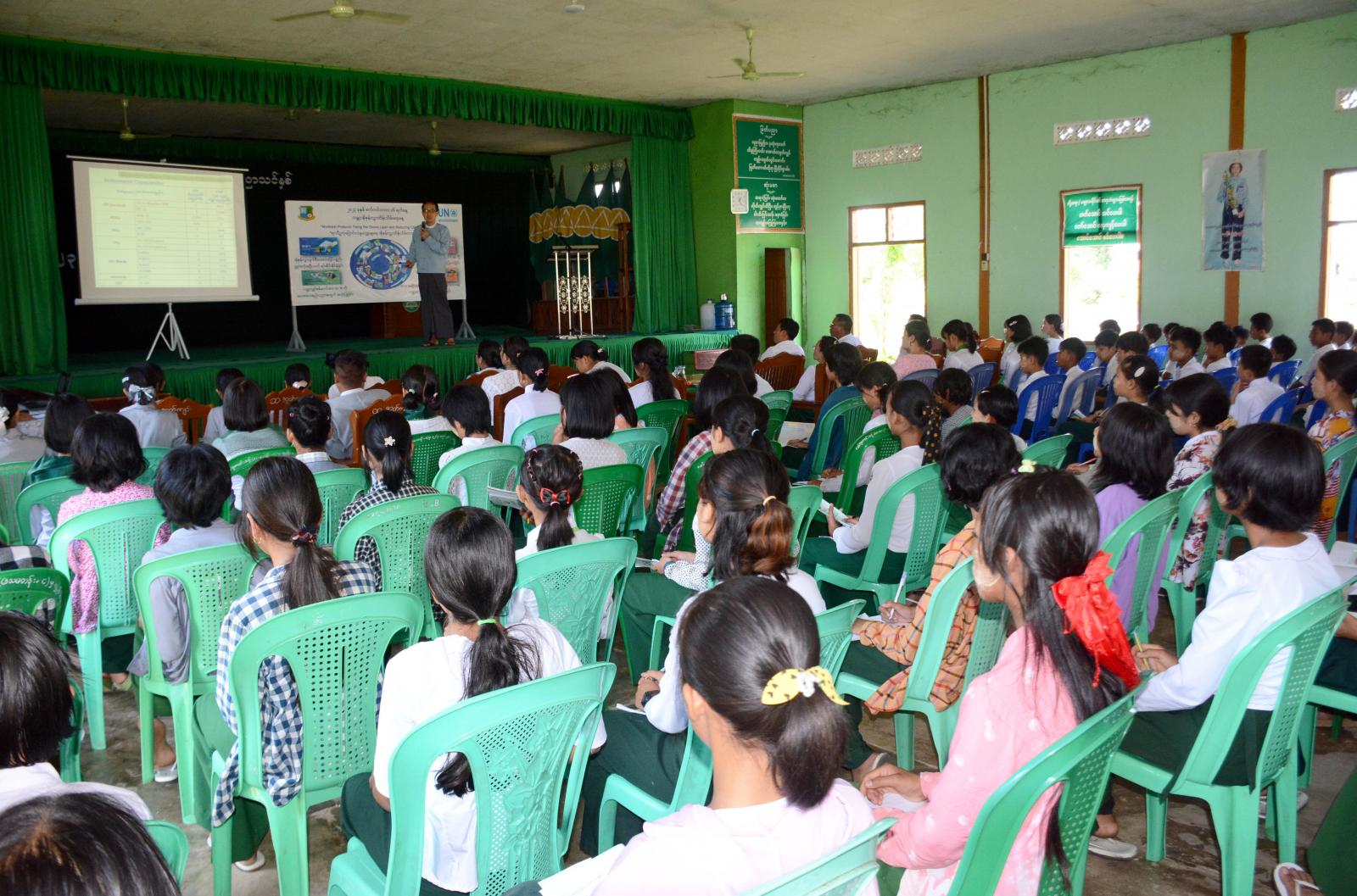 အဆိုပါအခမ်းအနားတွင် ခရိုင်ပညာရေးမှူးဒေါ်သန်းသန်းမြင့်က အဖွင့်အမှာစကားပြောကြားပြီး ခရိုင်ပတ်ဝန်းကျင်ထိန်းသိမ်းရေးဦးစီးဌာနမှ ခရိုင်ဦးစီးမှူးဦးသန်းနိုင်ဝင်းက ကမ္ဘာ့အိုဇုန်းလွှာထိန်းသိမ်းရေးနေ့အထိမ်းအမှတ်အဖြစ် “အိုဇုန်းလွှာအကြောင်းသိကောင်းစရာ”ခေါင်းစဉ်ဖြင့် ကျောင်းသားကျောင်းသူများအား သိရှိနားလည်နိုင်စေရန်အတွက် ပါဝါပွိုင့်ဖြင့် အသိပညာပေးဟောပြောခဲ့သည်။
