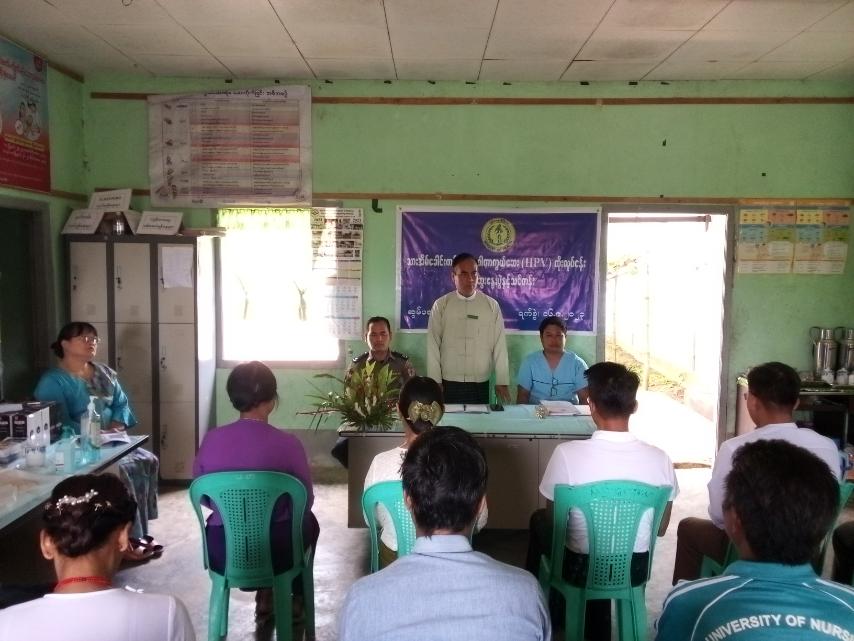 အခမ်းအနားတွင် မြို့နယ်စီမံအုပ်ချုပ်ရေးအဖွဲ့ဥက္ကဋ္ဌ ဦးခင်မောင်မြင့်က အဖွင့်အမှာစကားပြောကြားပြီး မြို့နယ်ပြည်သူ့ကျန်းမာရေးဦးစီးဌာနမှူး ဒေါက်တာသန်းထွန်းဝင်း မြို့နယ်မိခင်နှင့်ကလေးကျန်းမာရေးဌာန၊ မြို့နယ်ကျန်းမာရေးမှူး အဆင့် (၁) ဒေါ်ဂျေလုဂျာတို့က မြန်မာနိုင်ငံတွင် သားအိမ်ခေါင်းကင်ဆာဖြစ်ပွားမှုအခြေအနေ၊ ကာကွယ်ဆေးထိုးနှံမှုနှင့် လွှမ်းခြုံမှုအခြေအနေ၊ သားအိမ်ခေါင်းကင်ဆာရောဂါလက္ခဏာ အကြောင်းအရာများကို ရှင်းလင်းခဲ့ကြသည်။